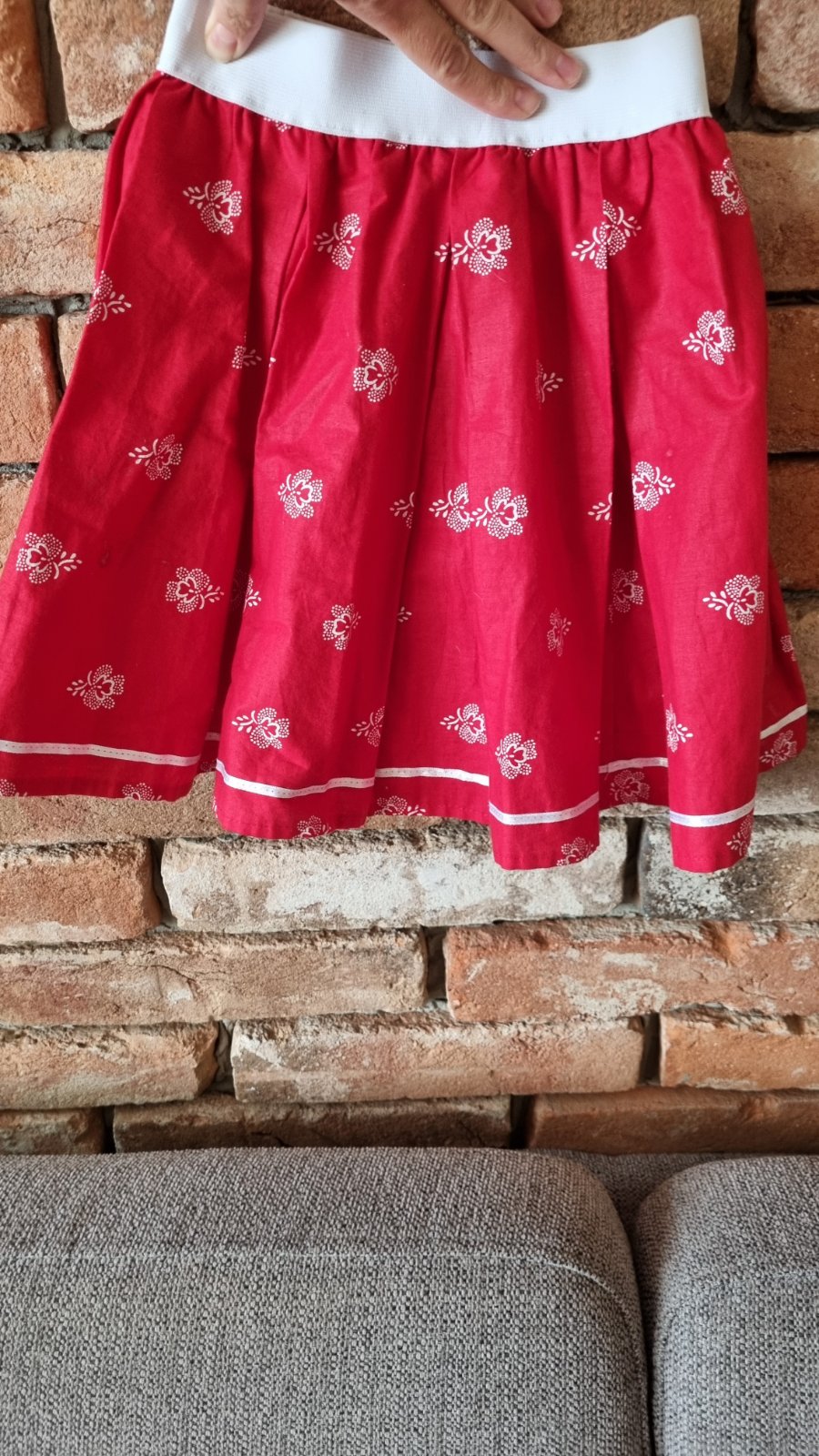 Dievčenská suknička s ľudovým vzorom, ako nová. Pás s gumou 24 cm, dĺžka 37cm.