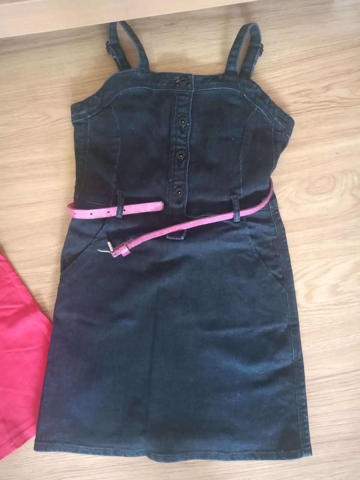 1. nenosenú riflovú šatovú sukňu na traky zn.H&M, veľ 140 pekný strih mäkká riflovina,