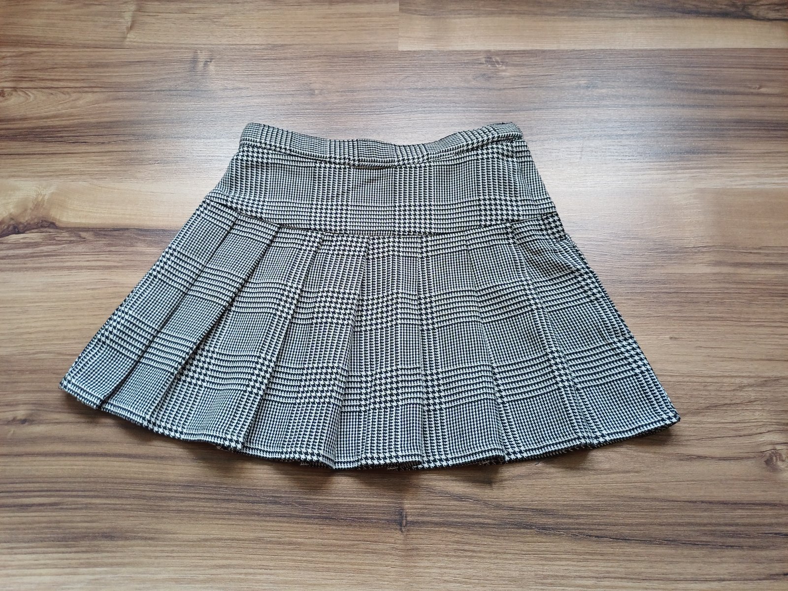 Minimálne nosená skladaná károvaná suknička, nepoškodená, výborný stav, zapínanie na boku na zips a cvok, regulácia šírky pásu na gumičku, celková dĺžka 34 cm, šírka pásu na maxime 2 x 28 cm.