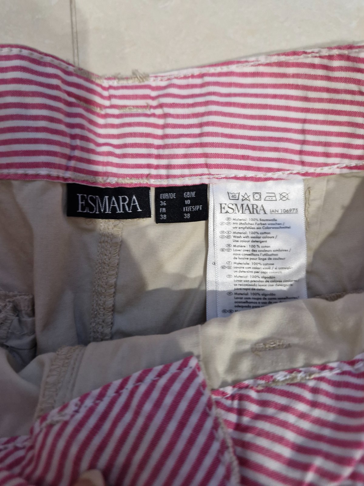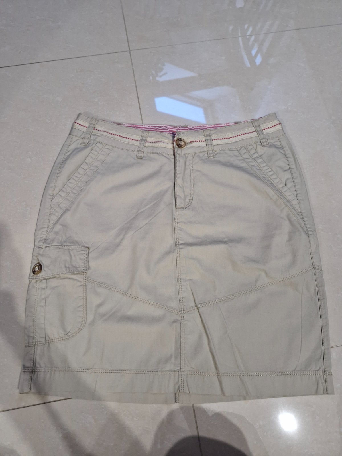 Sukna úplne nová,bez vysacky. Mne veľká takže nevyuzijem. V pase široká guma,funkčná snurka. Funkčne predné vrecka. Pas v klude 40cm,bočná dlzka 43cm Veľkosť písaná 36/38