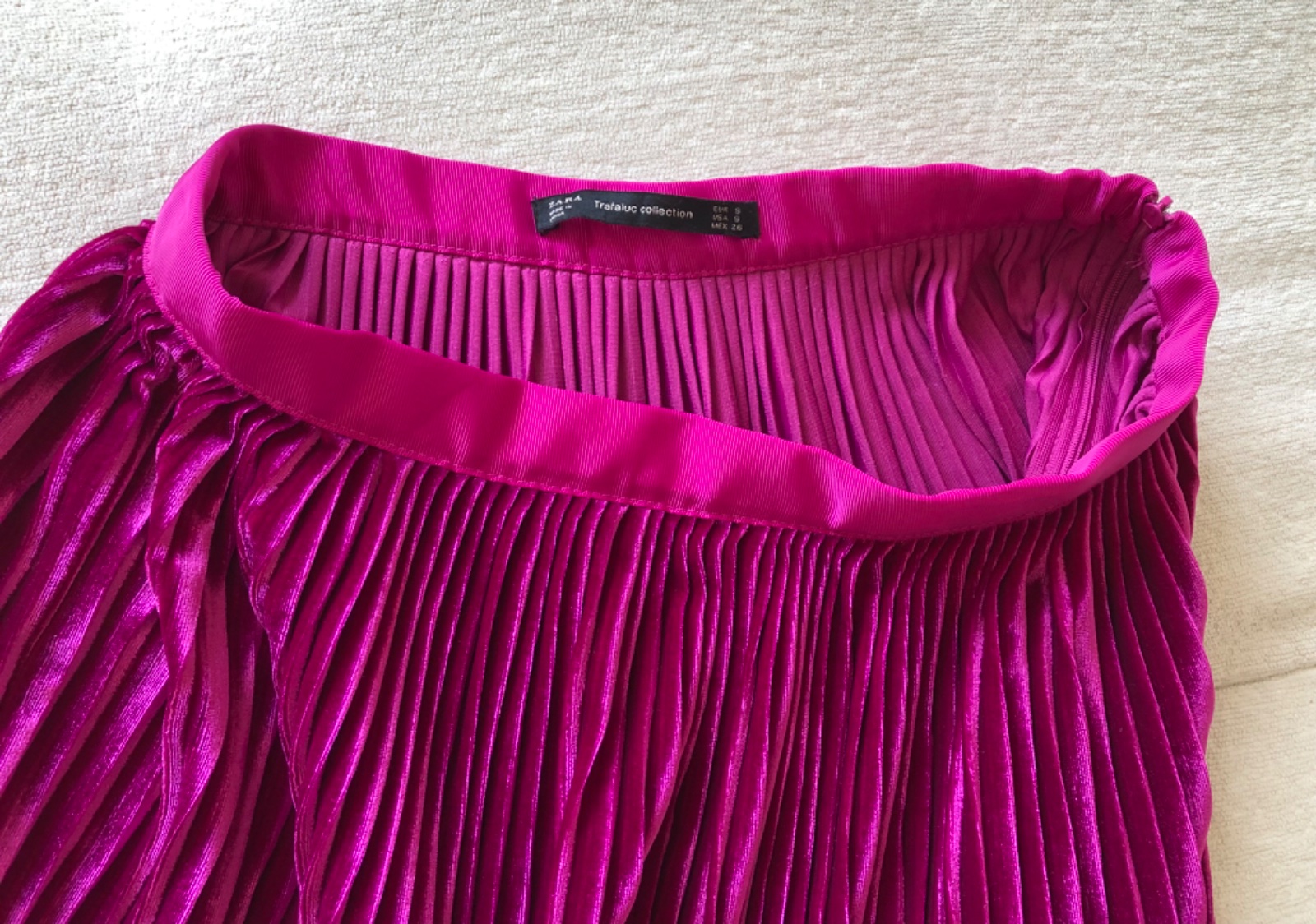 Cyklámenová skladaná zamatová sukňa Zara, S/36
