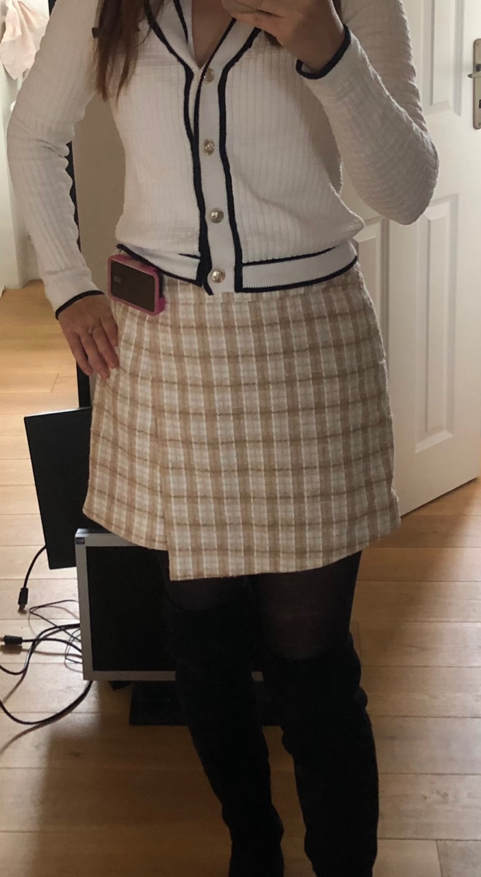 - nosený krémovo - hnedý károvaný skort/sukňošortky/sukňa so šortkami