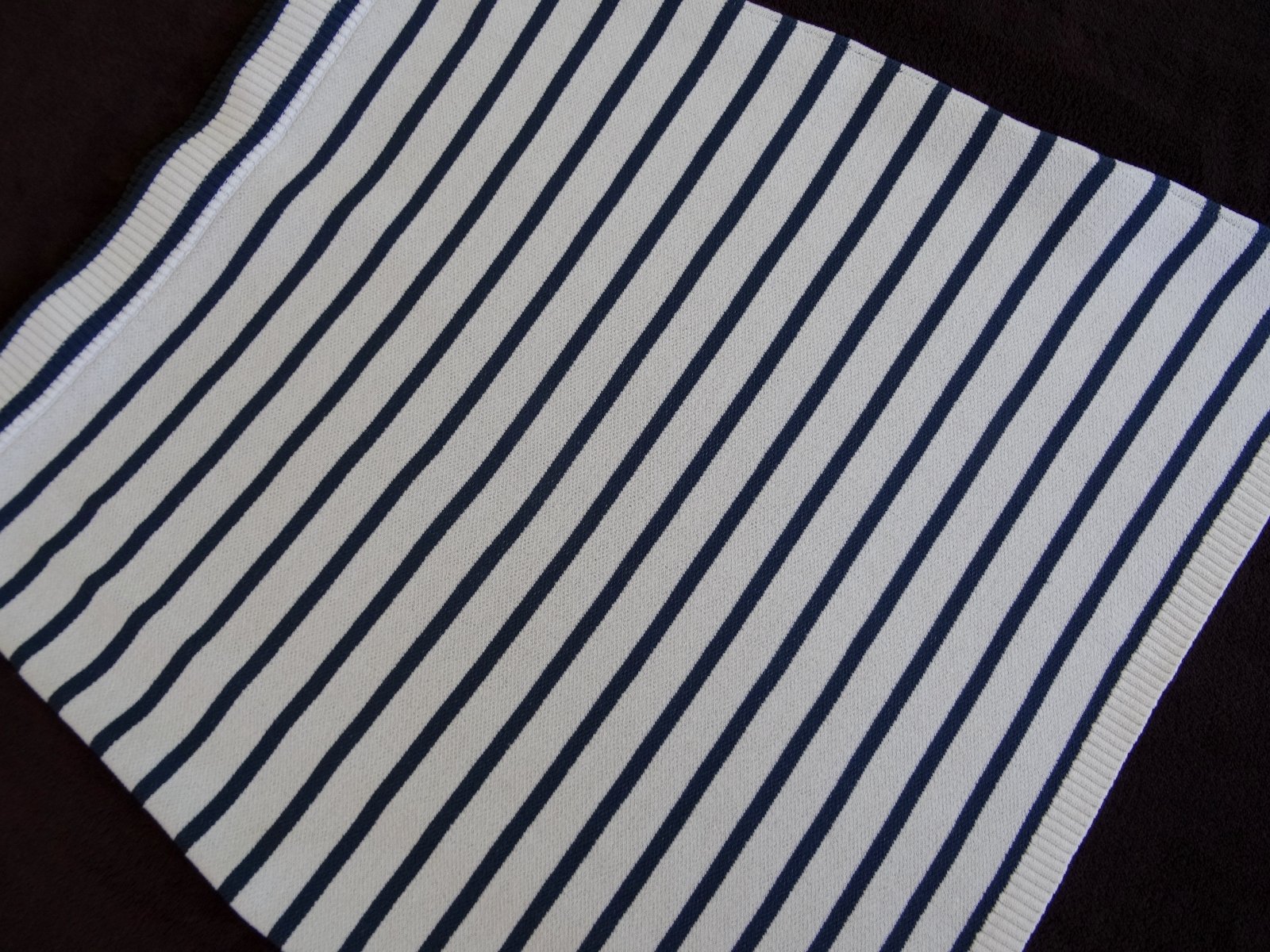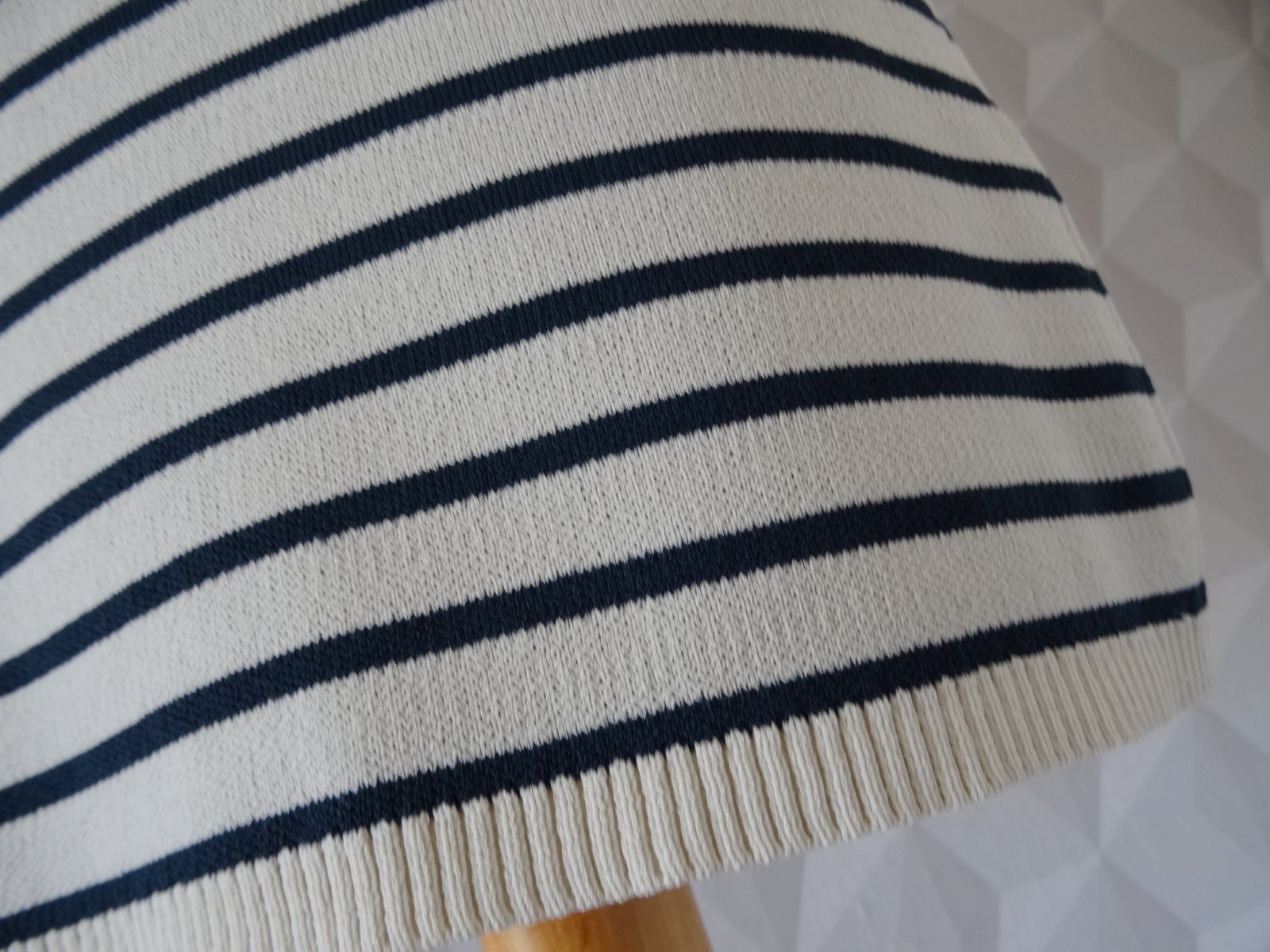 Dámska sukňa z kolekcie Bruuns Bazaar, veľ. M, rozmery: dlžka 47cm, pás 2x36-43cm. Biela s tmavo modrými pruhmi. Úpletová, elastická - v páse na gumu.