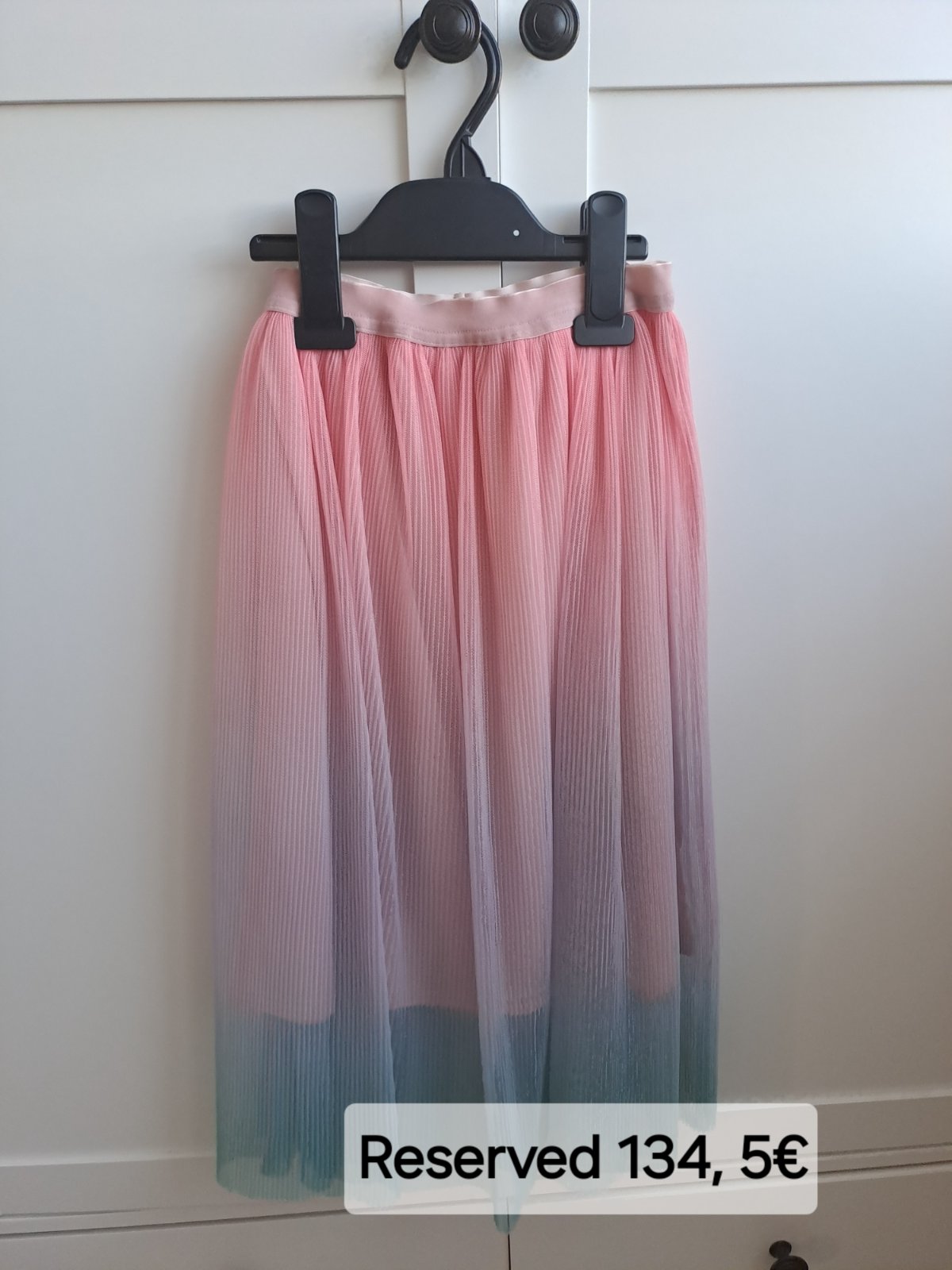 Krásna dievčenská sukňa v super stave bez poškodenia. Veľkosť písana 134 ale vydrží aj dlhšie.