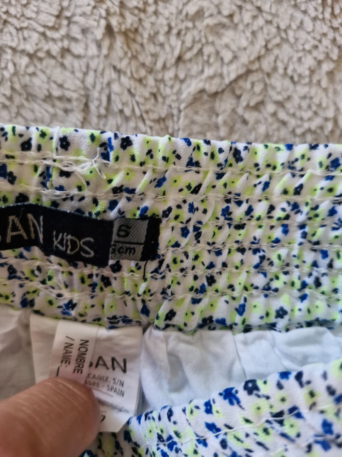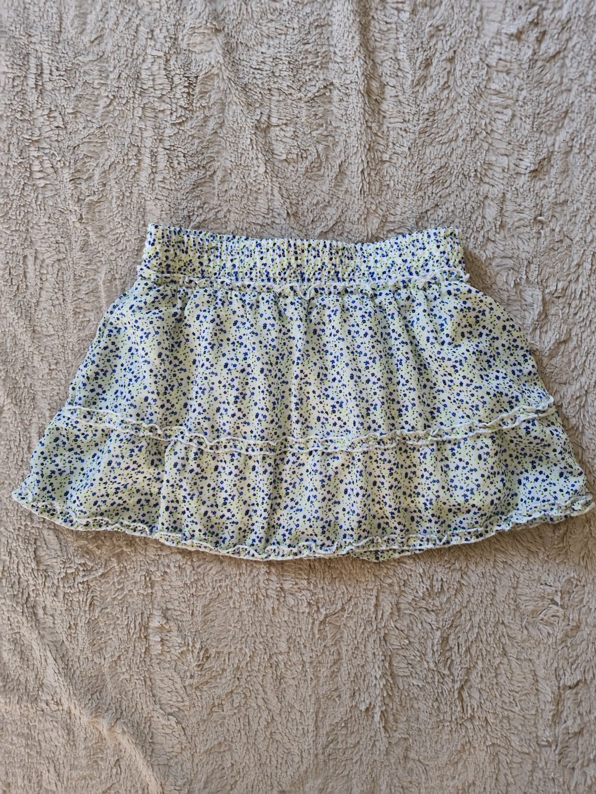 Krémová s modrými a zelenými kvetmi. Krásna, skoro nenosená.sedí aj na 122.