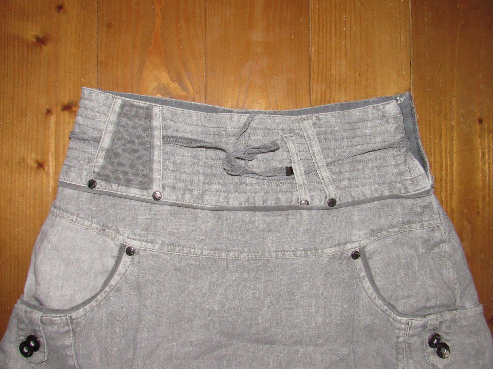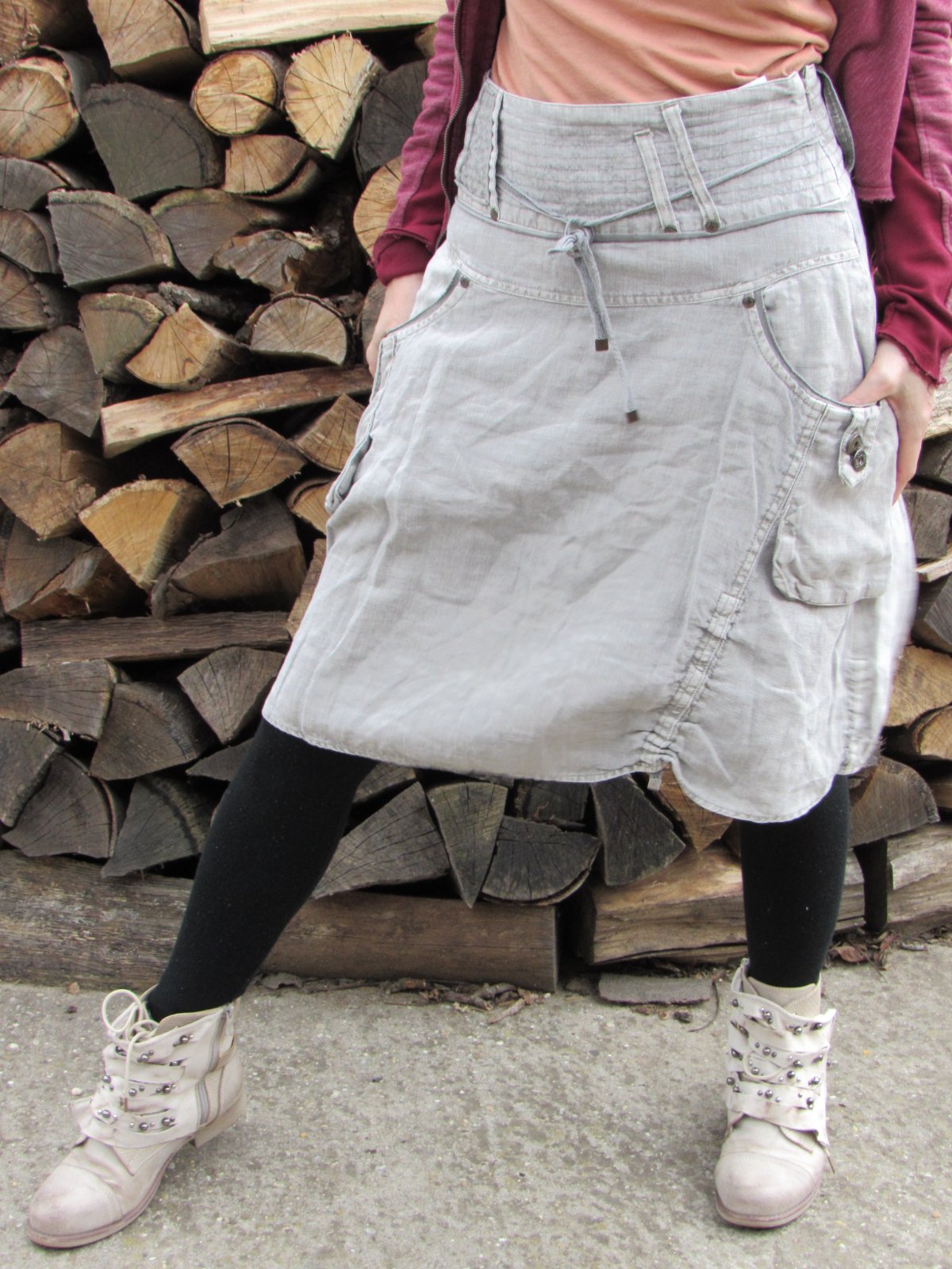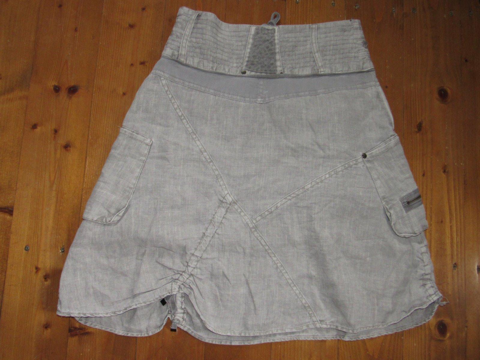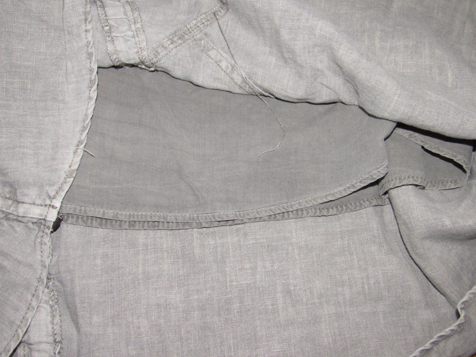 zaujímavo šitá sukienka, má spodničku, 100% ľan, olivovo-sivá farba, pekné detaily, dá sa upraviť dĺžka stiahnutím šnúrkou