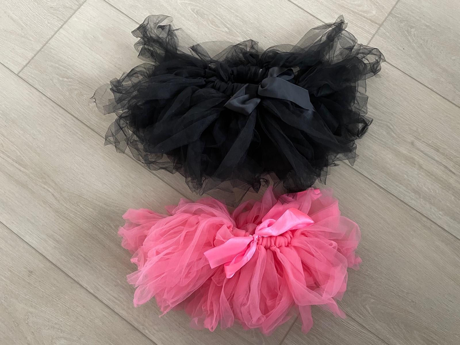 Ružová a čierna suknička. Ružová obvod 32cm, čierna 35cm. 5€/ks