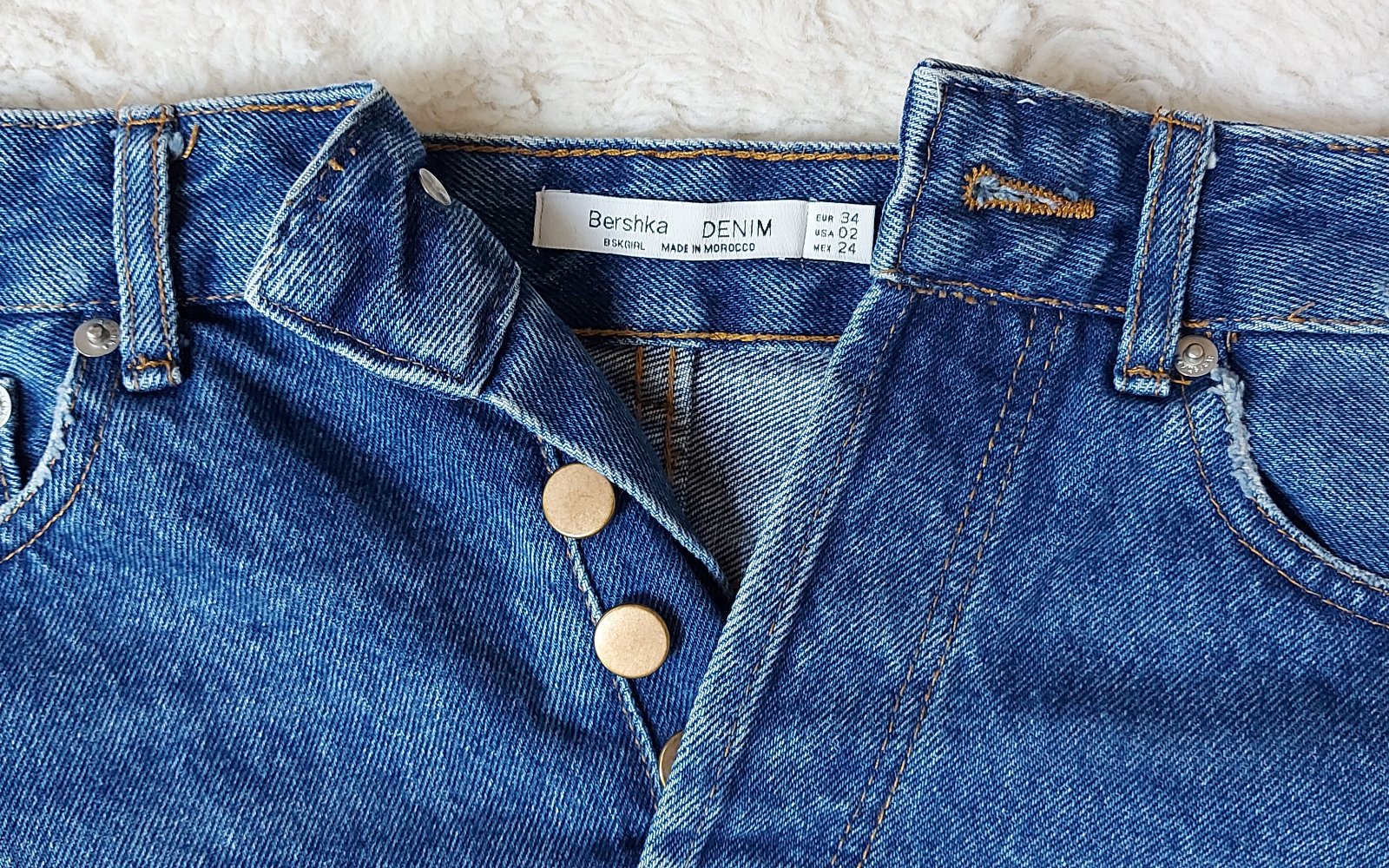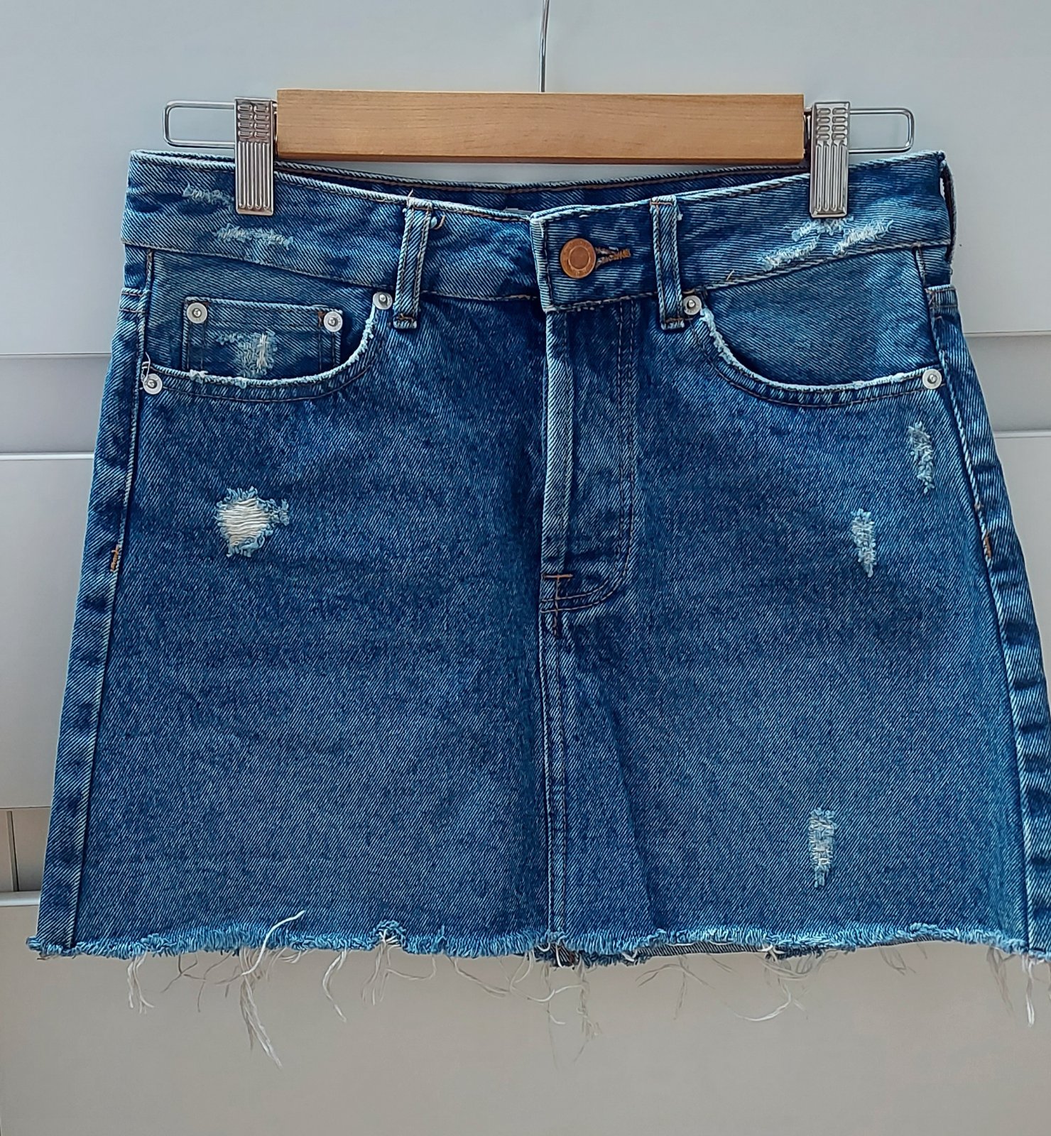 Mini riflová sukňa so zapínaním na gombíky. Predné aj zadné vrecká. Nosená minimálne, top stav.