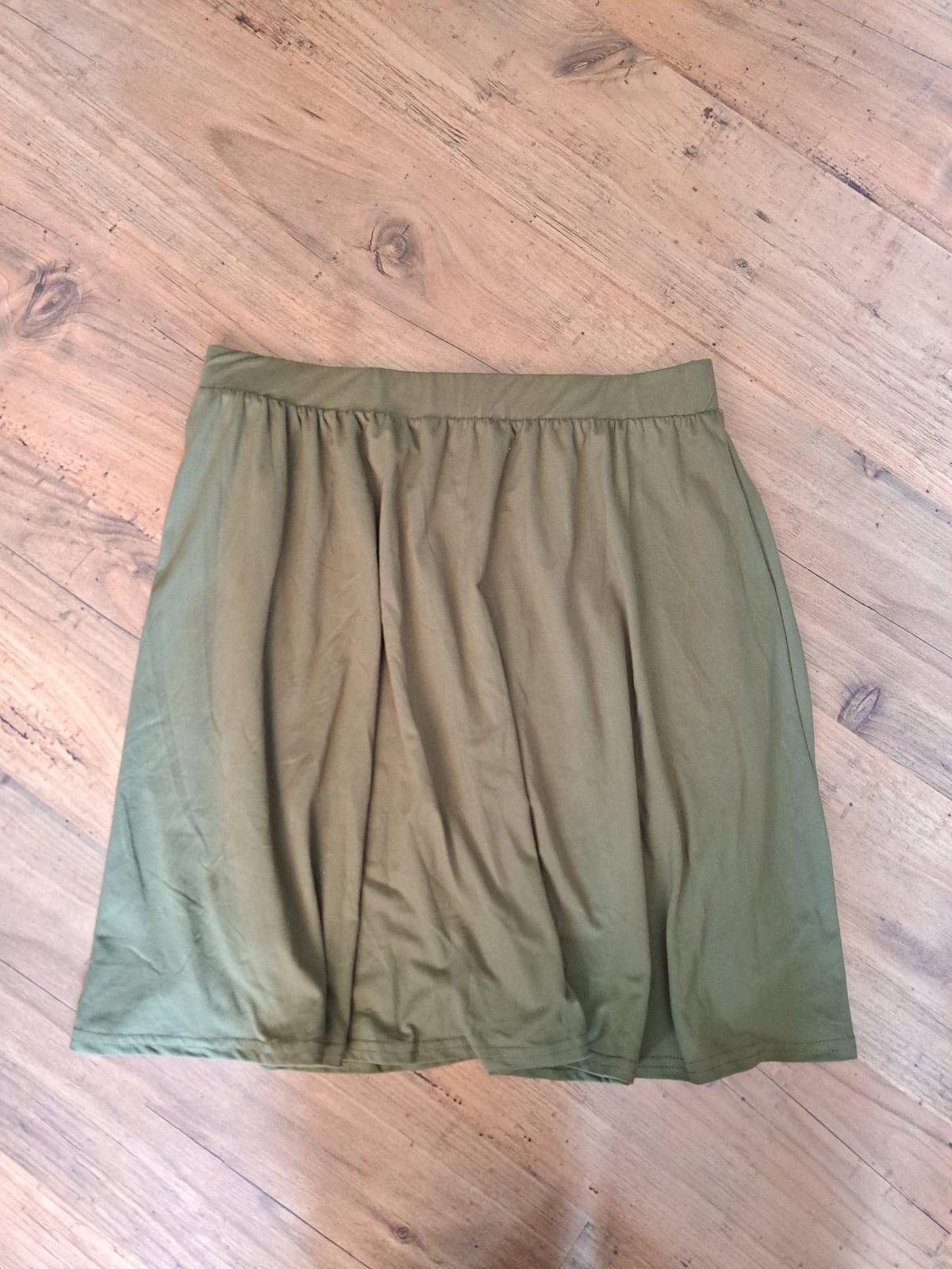 saténová, nová bez visačky - nepraná ani nenosená pás vkľude 44cm- max 60cm dĺžka 105cm skryté vrecká na boku vojenská zelená povodna cena 24,99€