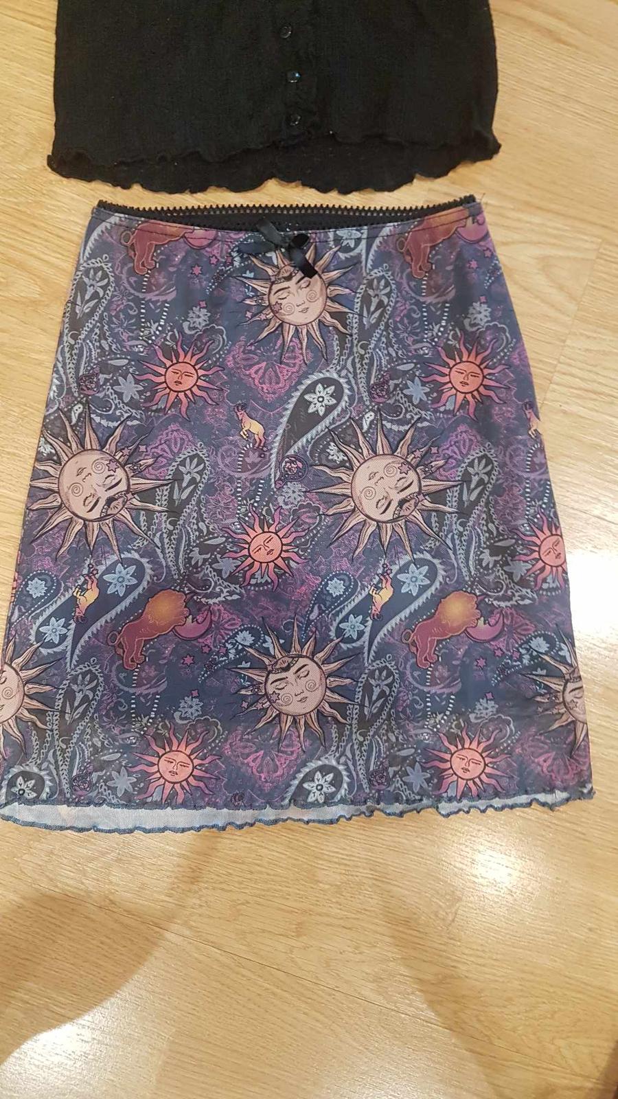 pekná tmavomodrá sukňa ozdobená pištolami, zapinanie na zips, dĺžka pod kolena, rozmery na fotkách, ja som ju použila, na haloween / karneval ako maska piratky