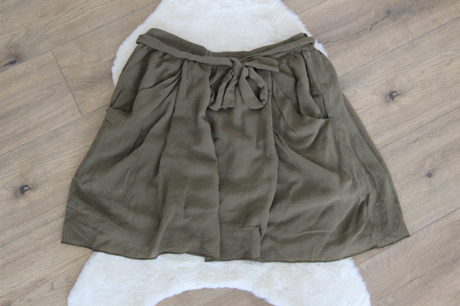 Khaki sukňa s vreckami a opaskom na viazanie, veľkosť L. Značka Zara, top stav.