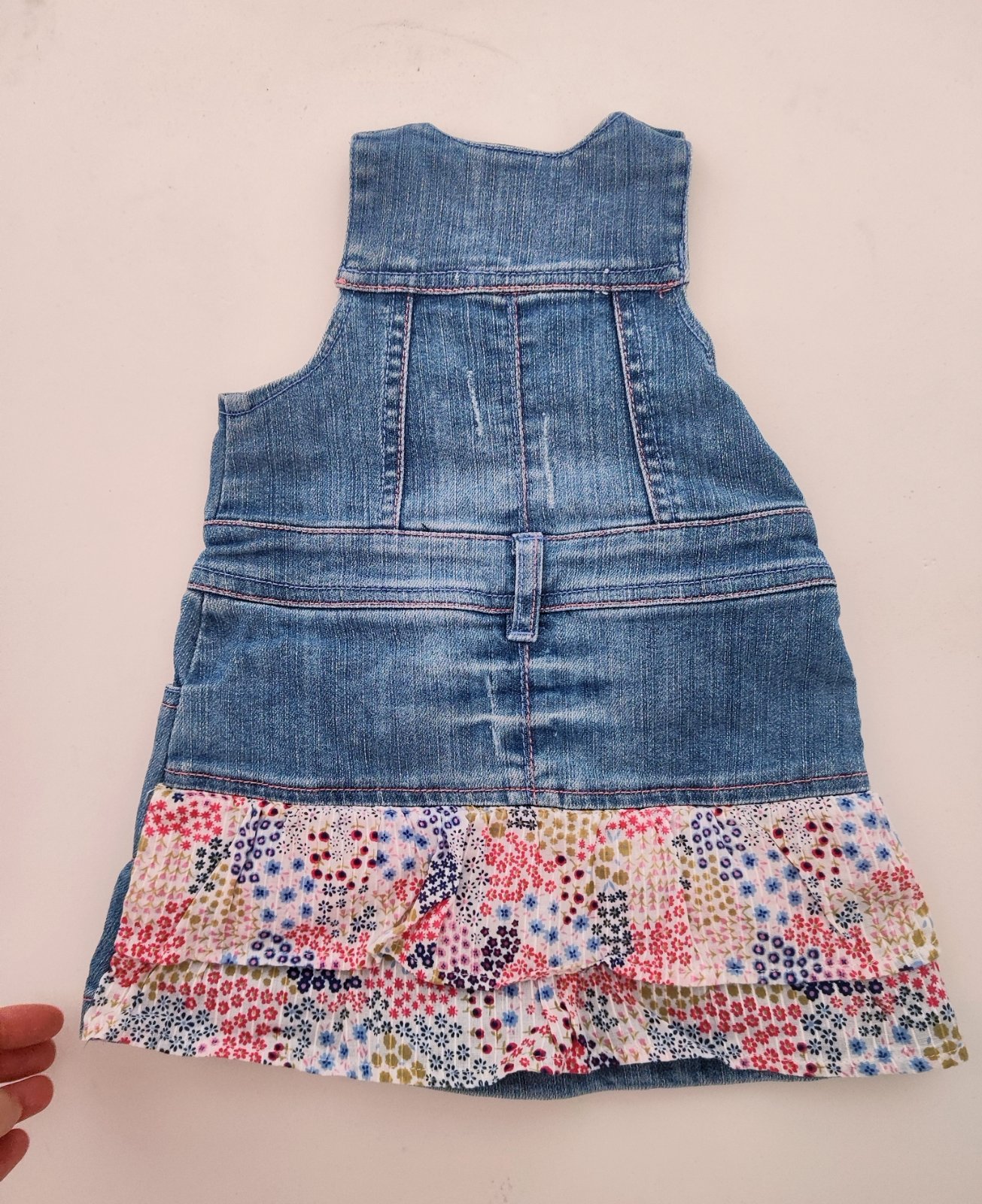 Pekná riflová suknička,dĺžka aj s trakami 42cm, šírka pod pazuškami 25x2cm a dole 36x2cm