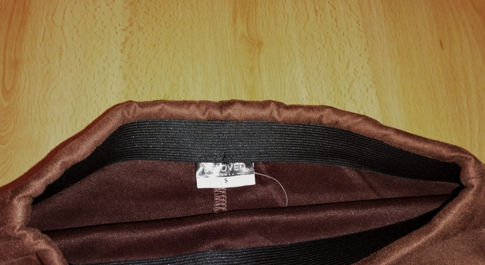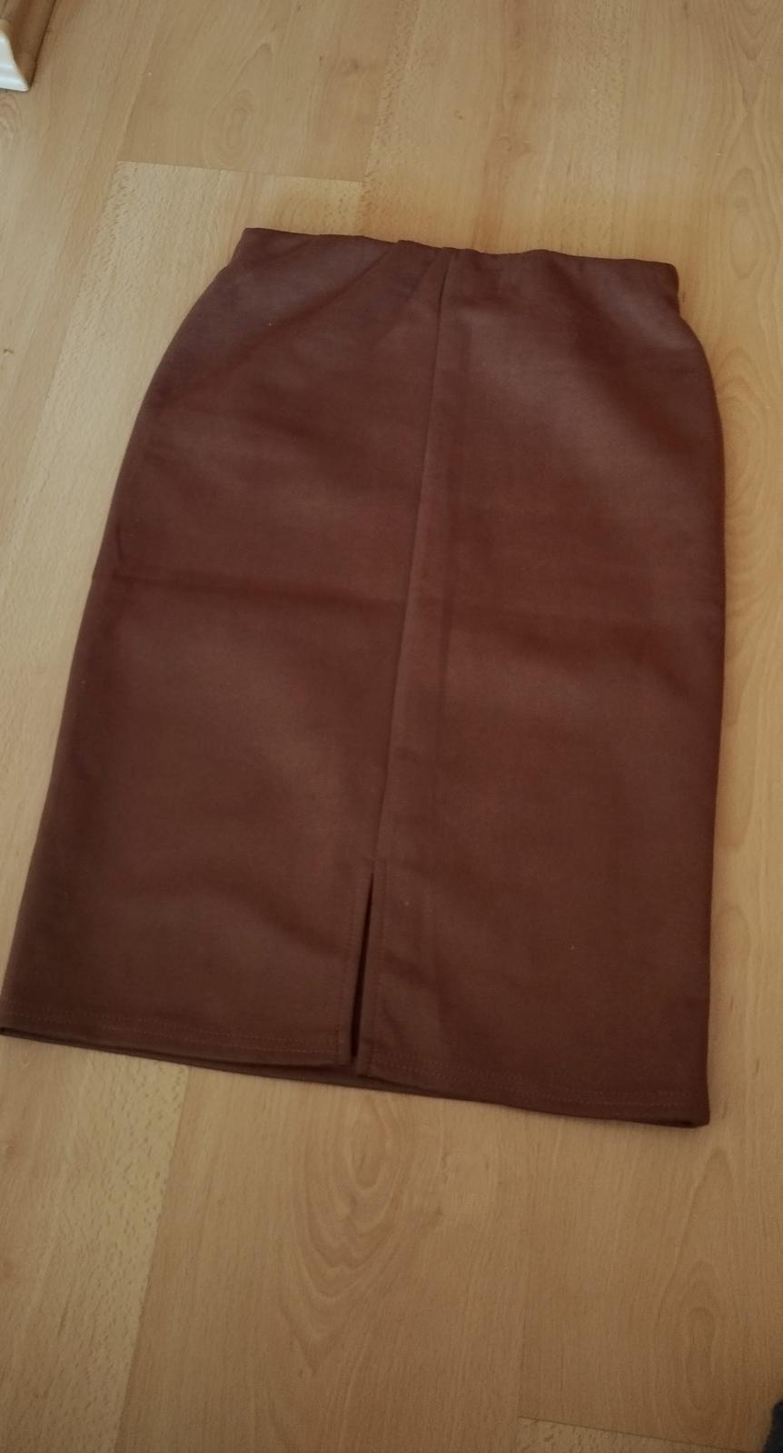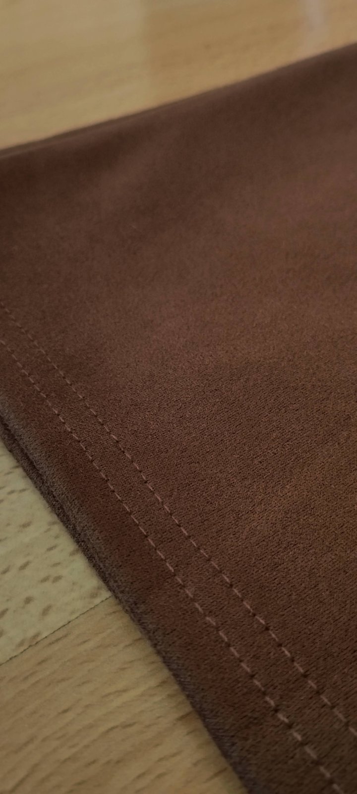 z mäkkej, vysoko kvalitnej látky s miernou pružnosťou, strednej hrúbky, niečo ako „micro-semiš“ alebo „velur“ alebo brúsená koža (povrch zamatový, mäkký na dotyk). Má elastický pás pre pohodlné nosenie. Klasický rozparok vzadu zaisťuje neobmedzený pohyb. Vďaka jednoduchému dizajnu sa perfektne hodí k väčšine outfitov, či už ležérnych alebo formálnych.