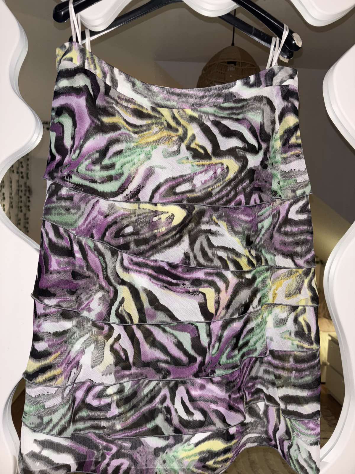 Bez visačky , podšita, nepruzi, odstrihnute štítky, sedí na L, pás 42 cm, d. 63 cm