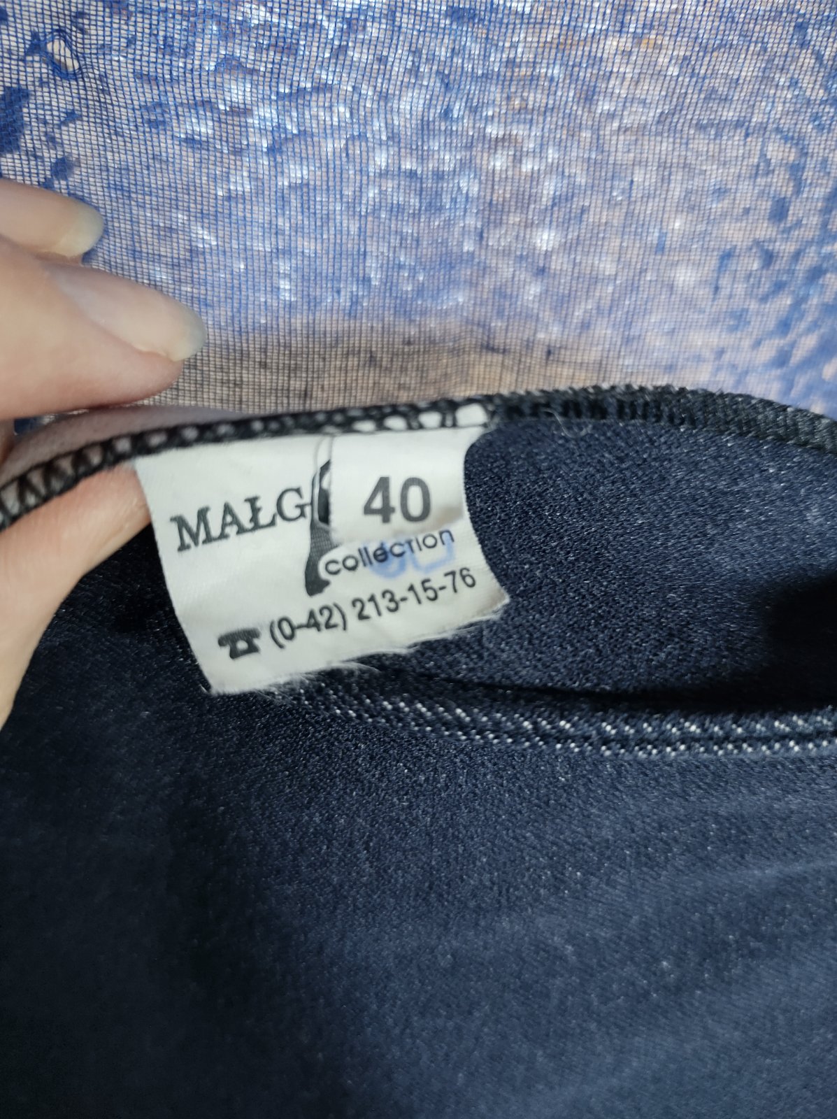 nosená, zachovalá, nemá žiadne poškodenie, iba trošku vyšúchaná na páse - viď foto, veľkosť 40, mierne elastická pás 37 cm (max. 2x41 cm) boky 2x46 cm dĺžka 47 cm