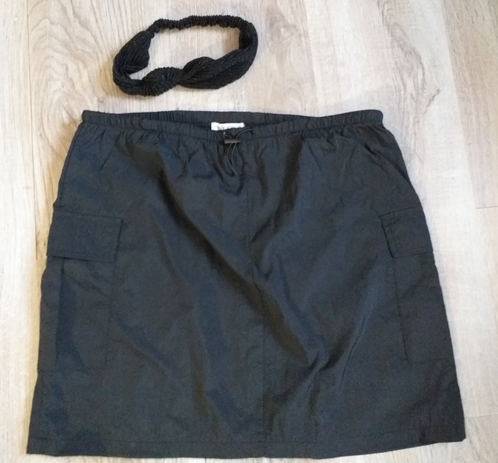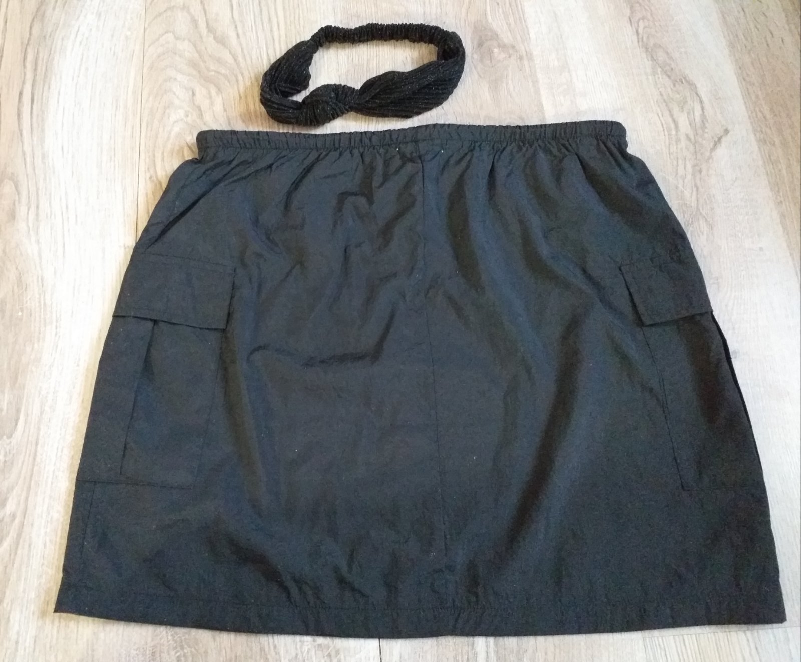 Oblečená na maximálne 5krát, ako nová, bez chybičky. Kupovaná v Gate, značka Fisherfield, veľkosť 40, pás na gumičku 2x40 cm, dĺžka 43 cm. Materiál.šuštiakovina, farba čierna.