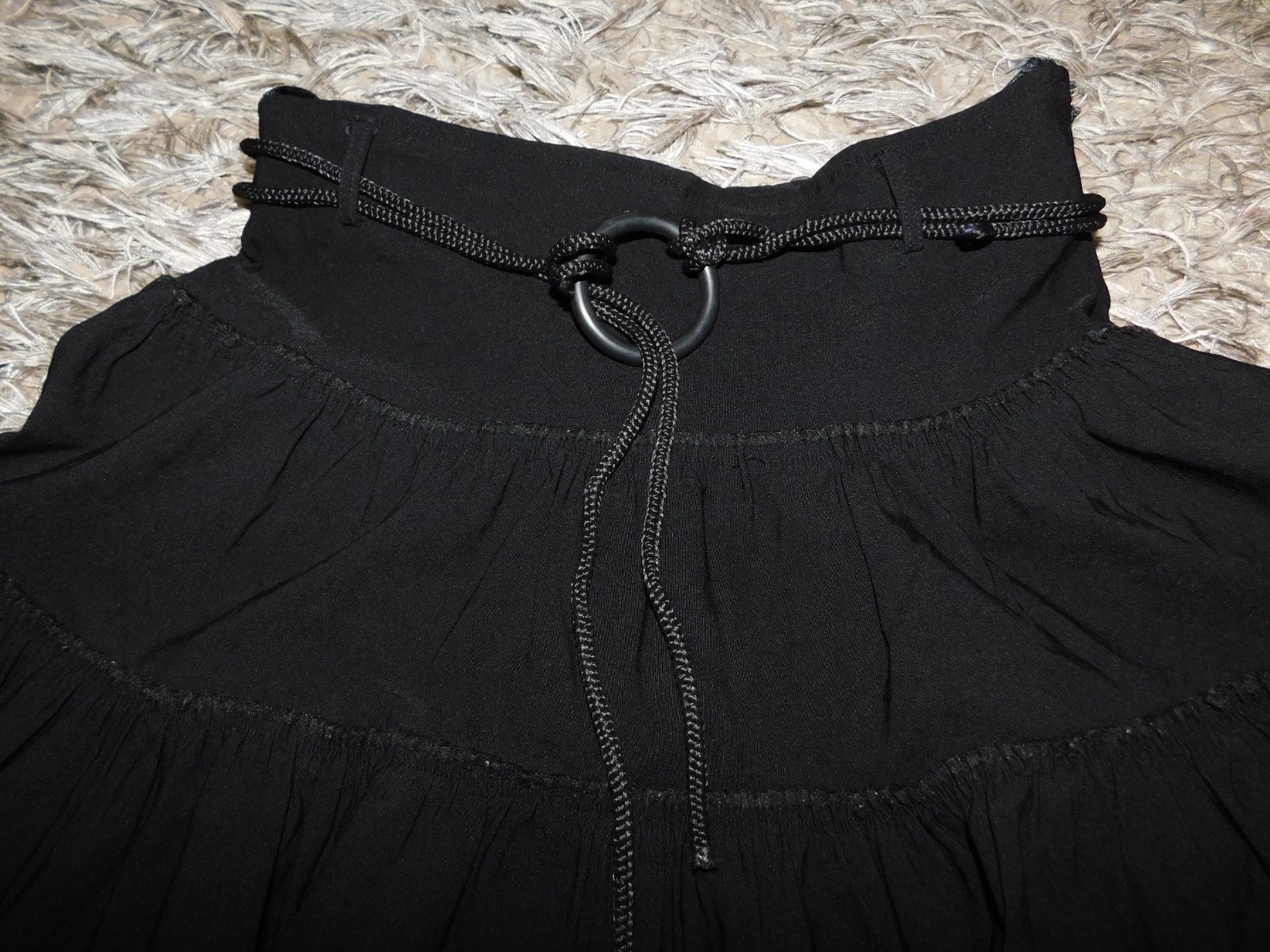 Sukna je tensia vhodna na leto. Farba pekna cierna, nevyblednuta /nie ako na foto, nevedela som lepsie odfotit/. Dlzka 46cm, pas 2x 41,5cm. + postovne