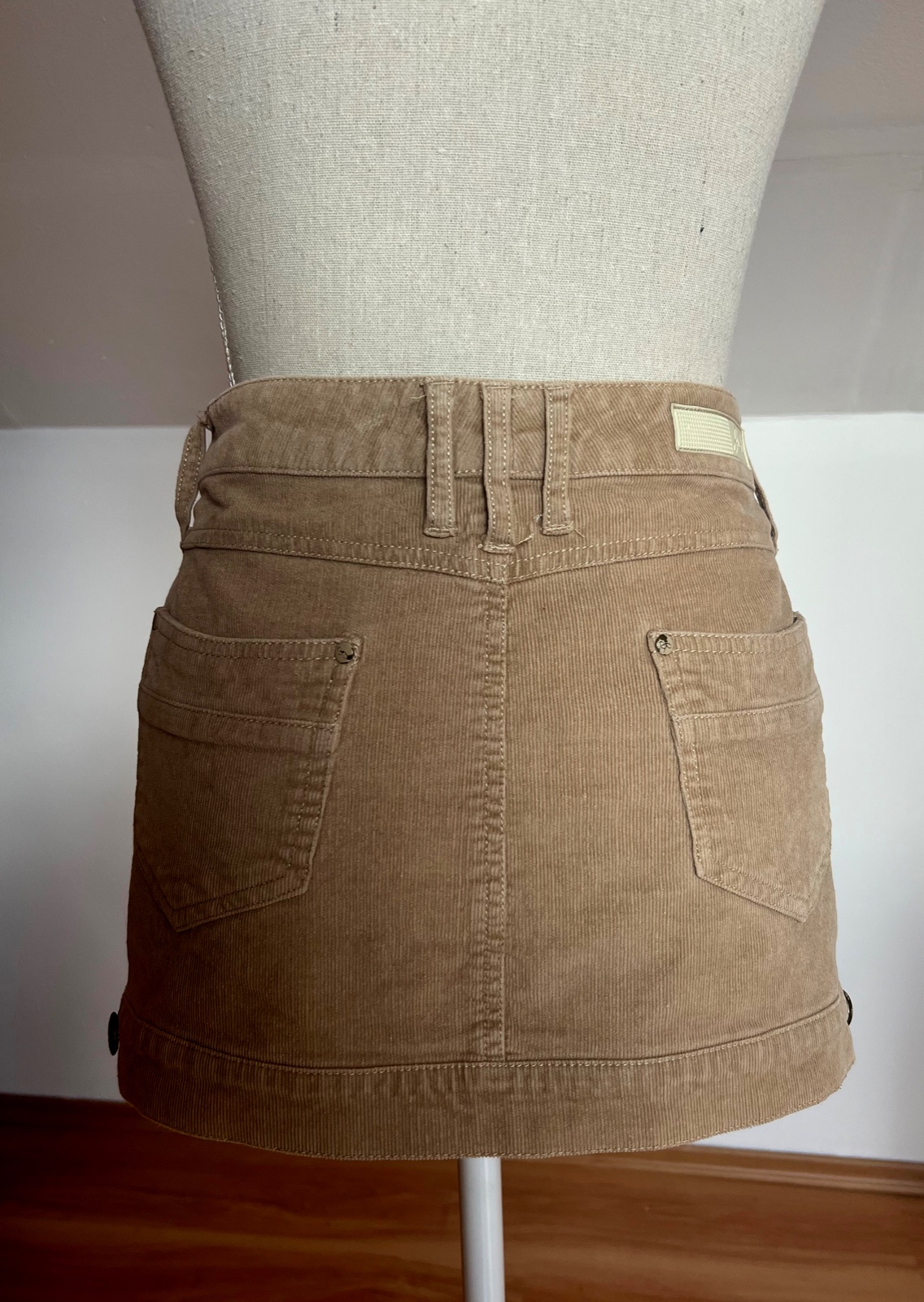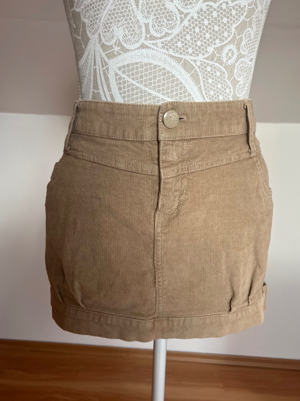 Hnedá menčestrová sukňa v perfektnom stave. Nosenie je vidieť len na kovových prvkoch na vreckách (mne to nevadilo pri nosení, ale aj tak to je zohľadnené v cene). Pohodlná a vhodná na každodenné nosenie. Zapína sa vpredu na zips a na gombík.