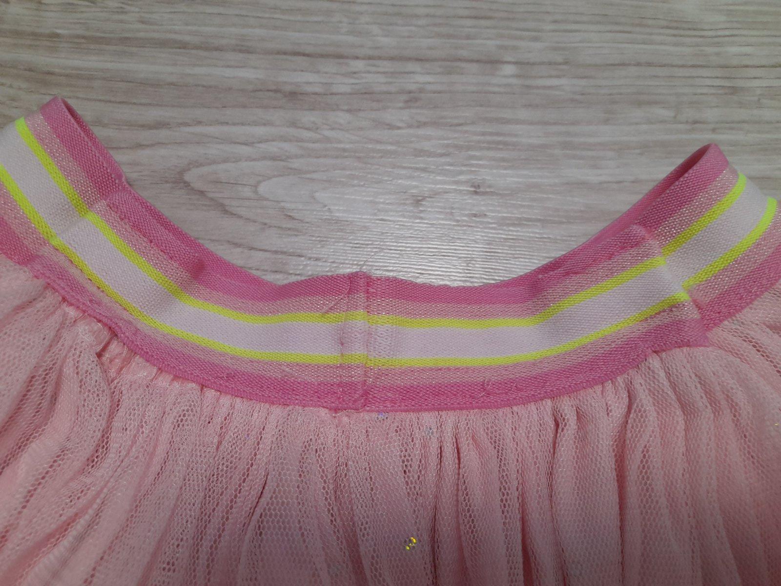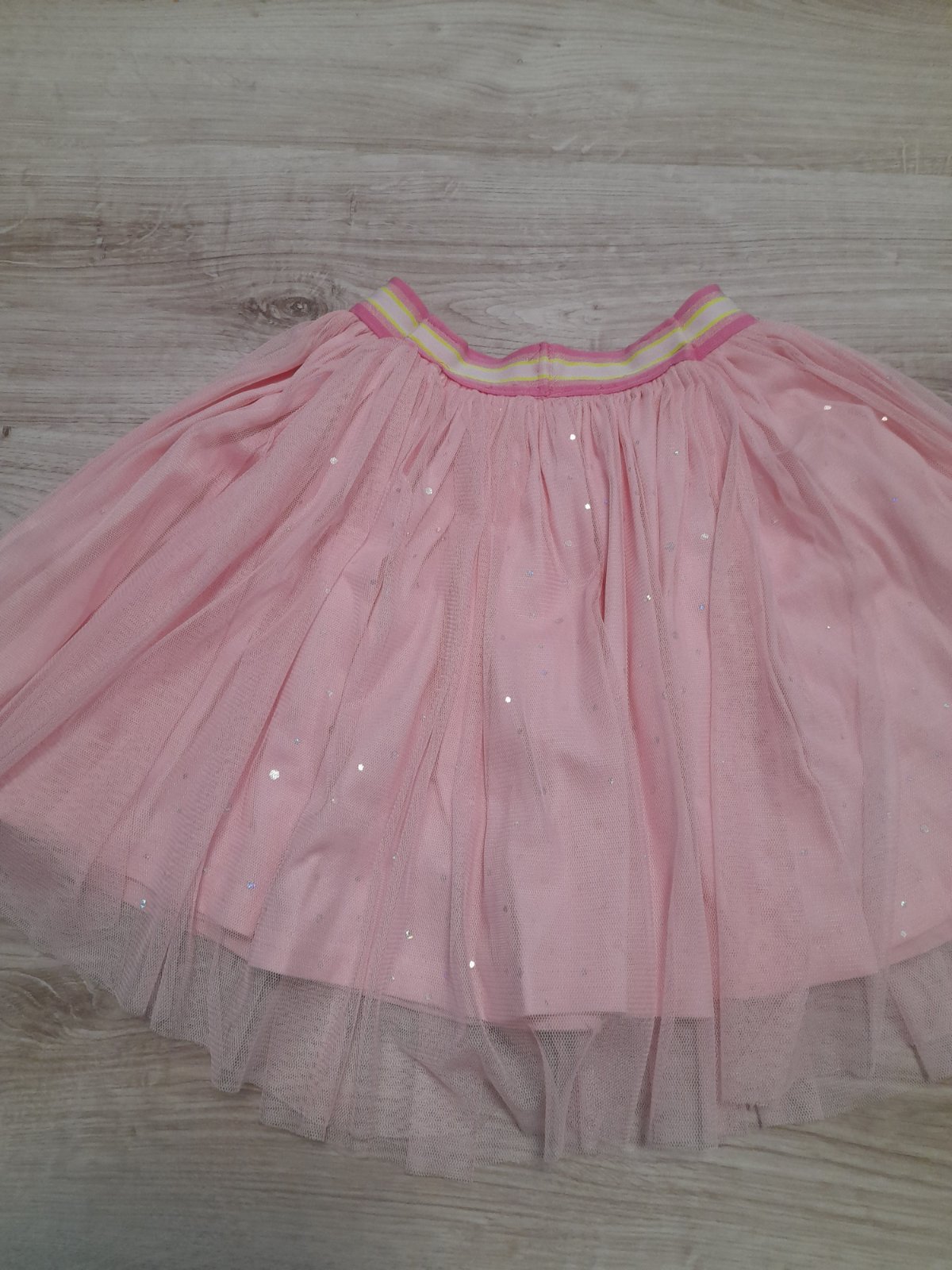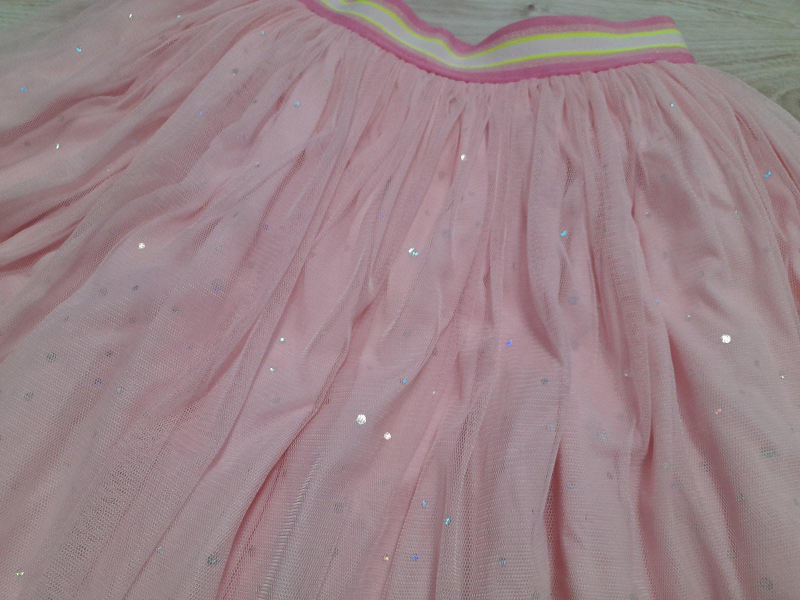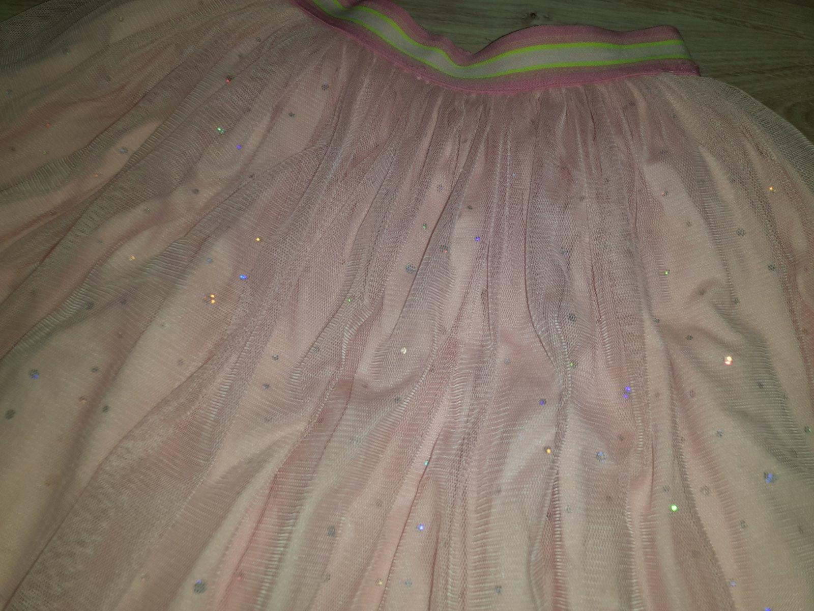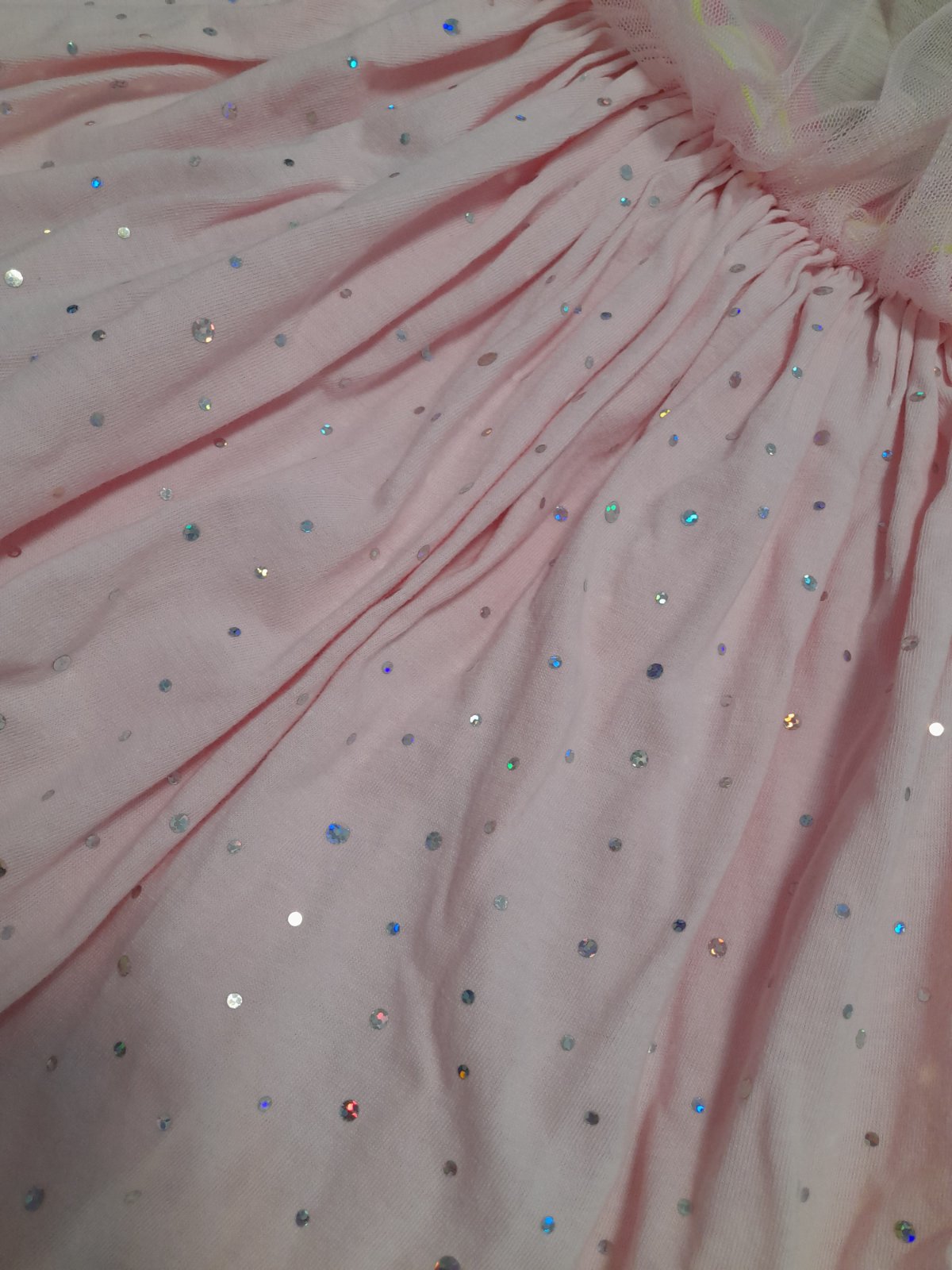 Velmi pekna suknicka pre dievcence. Zvrchu tyl, pod tylom bavlnena latka s trblietkami, napriek tomu, ze vela sa odlepilo stale to velmi pekne ukaze. V pase guma, dcere bola siroka, tak som pas zuzovala a na dvoch miestach.