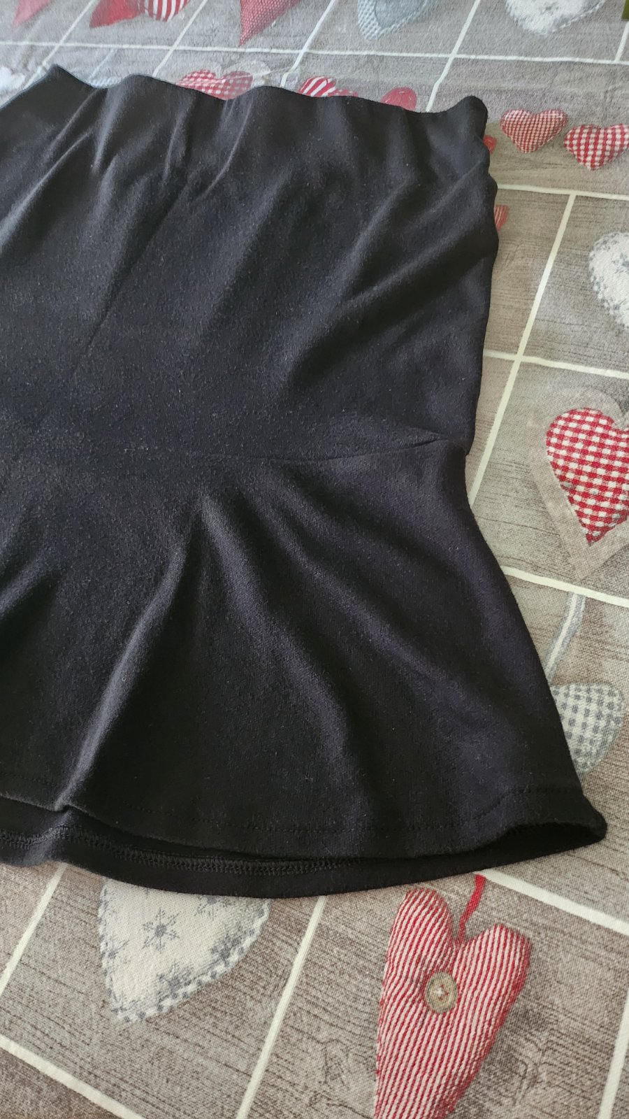 Pás na gumu (zapracovaná, takže zvonku to nevidieť, javí sa ako "bez gumová") a extrémne pohodlná, pustí aj o dve veľkosti nahor. Bavlna a elastan. Áčkový strih s volánom robí prekrásnu postavu a mínus 10 rokov.