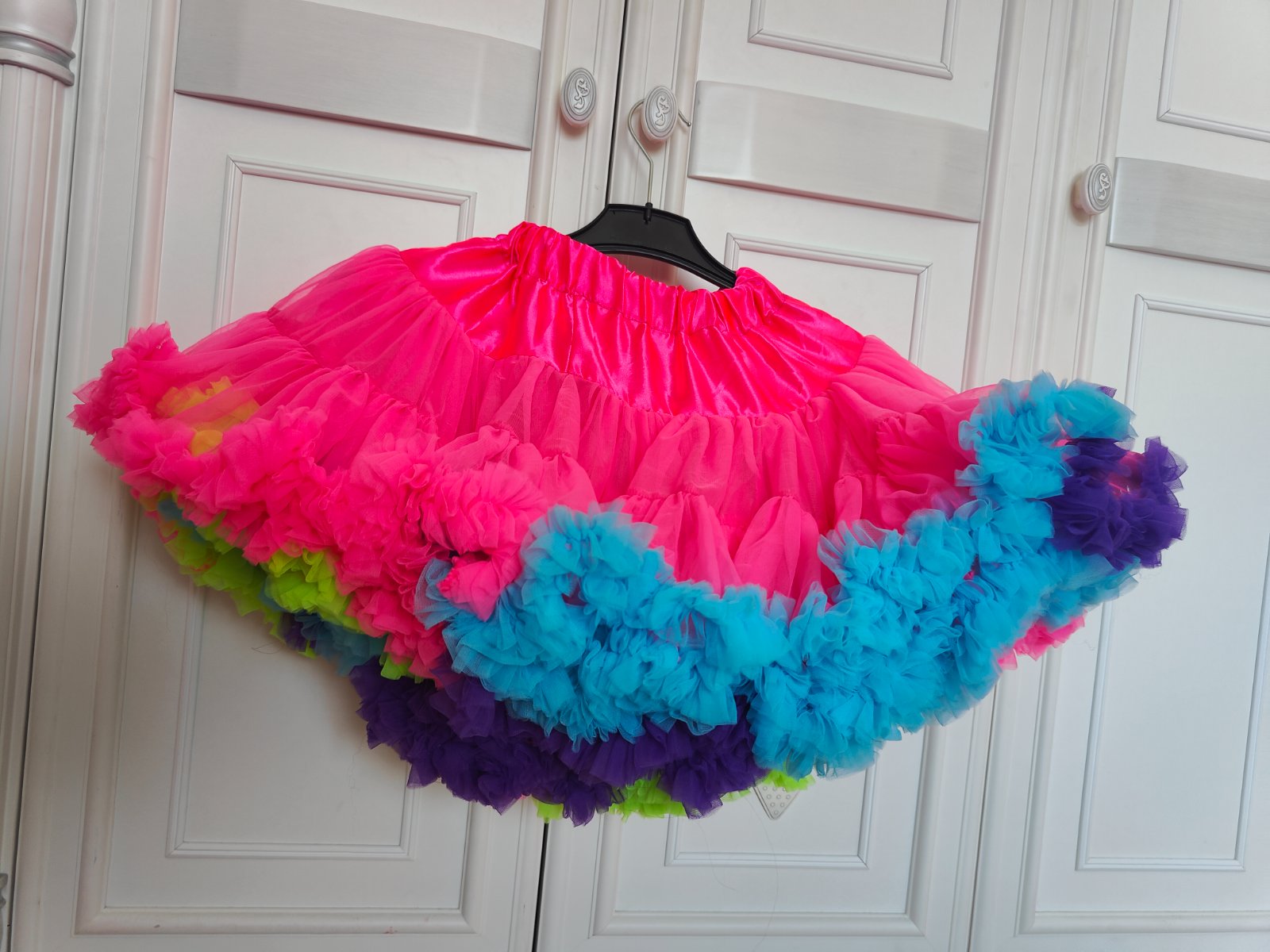 Predám krásnu sukňu kúpenú v Pink Spa v Bratislave. Veľkosť je označená XL ale podľa mňa nositeľna od 104-122. Kedze je na gumičku. Je krásna sýto ružová.