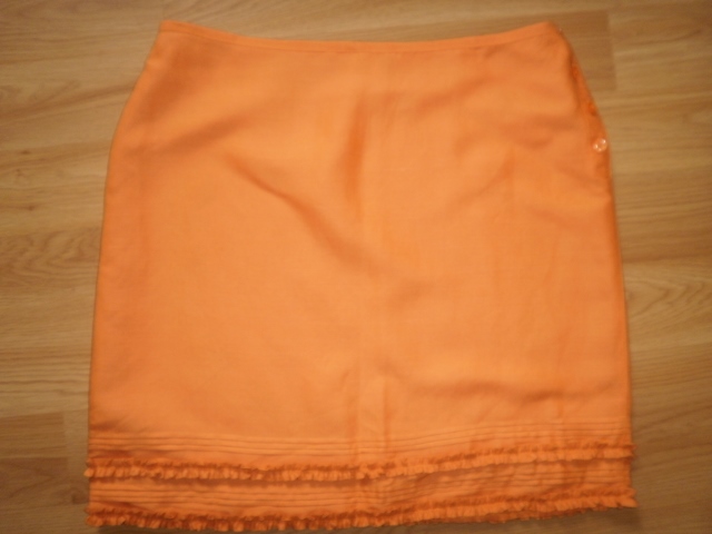 ľanová sukňa bez známok nosenia, 54%ľan,46% viscose, nie je podšitá, zapínanie na boku na gombíky, farba nie je krikľavá, ale taká tlmená oranž