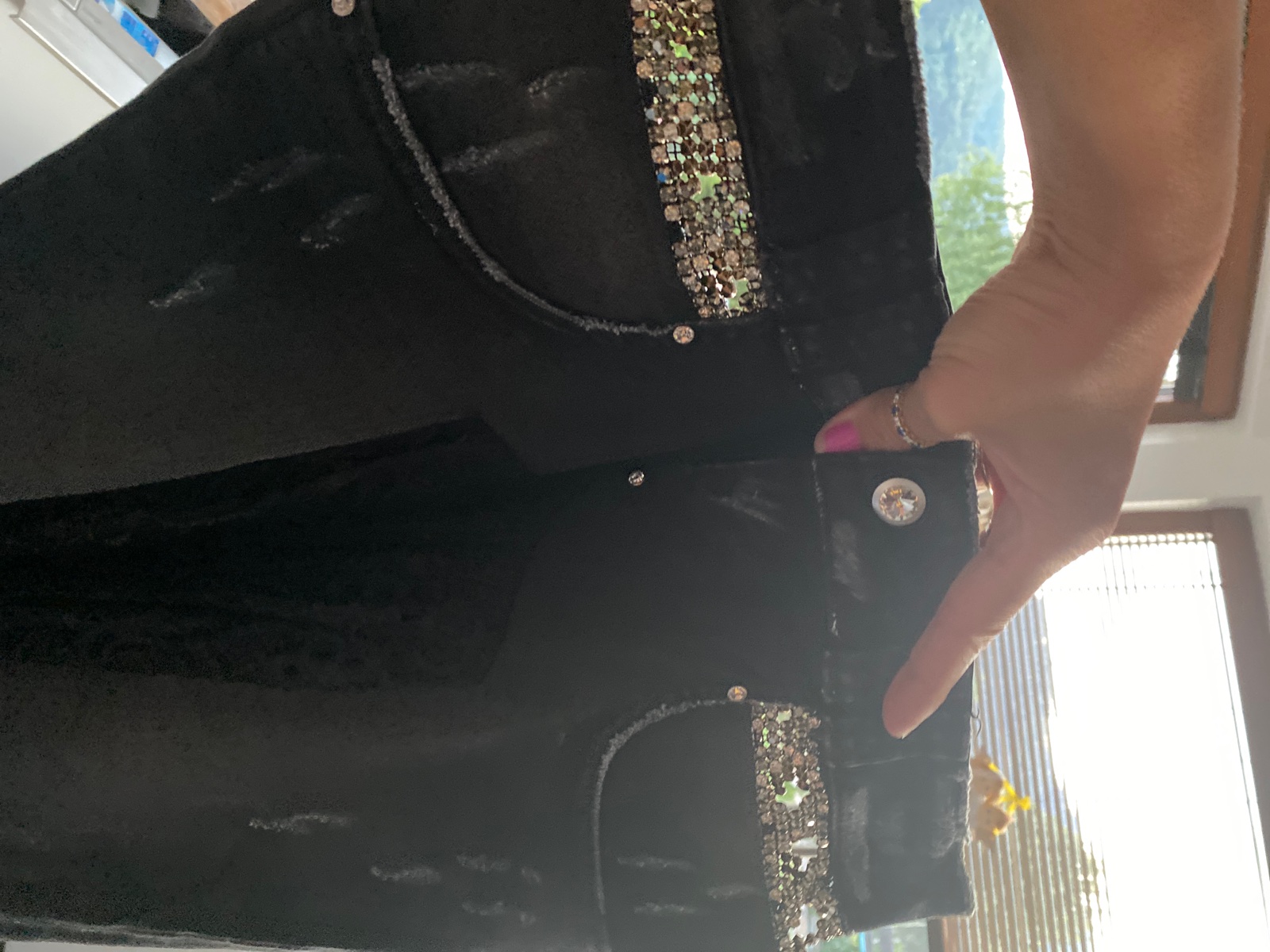 Širši pás . Zapínanie na zips.Ma bočné vrecká aj dve zadné.Vhodna aj pre slečny aj štíhlu dámu.