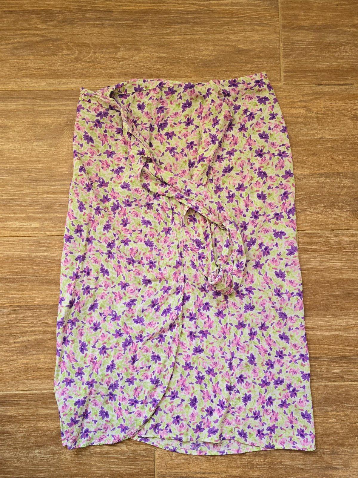 Béžová asimetricka sukna chyba v zadu jeden hacik na zapinanie ziadna velka zavada fialova je m/l spodný zahyb sa odlepuje ale da sa vyriesit cena za kus