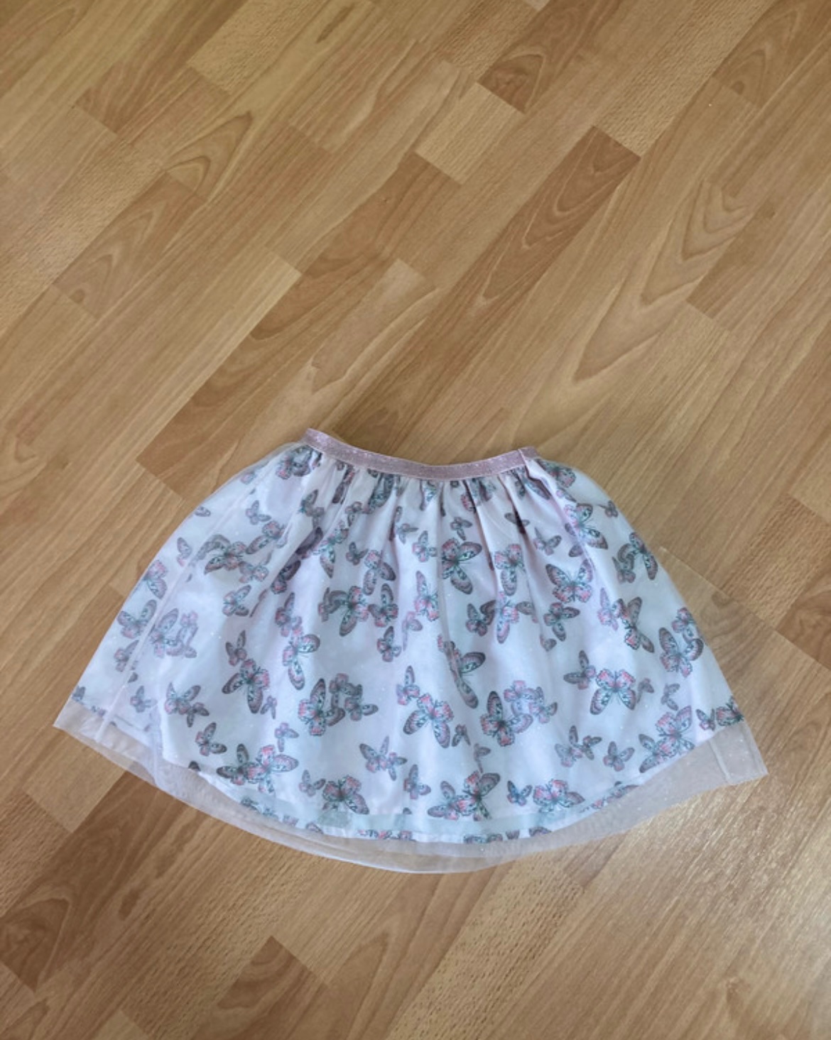 Krásna sukňa, oblečená raz, super stav, podšita, motylovy vzor a na ňom ďalšia trblietava vrstva