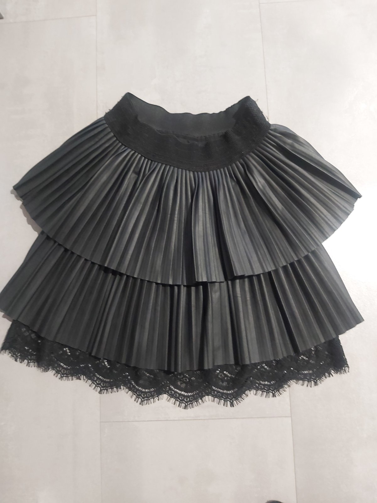 Damska skladana sukňa s krátkou. V páse s gumičkou. Sedí na M-L.