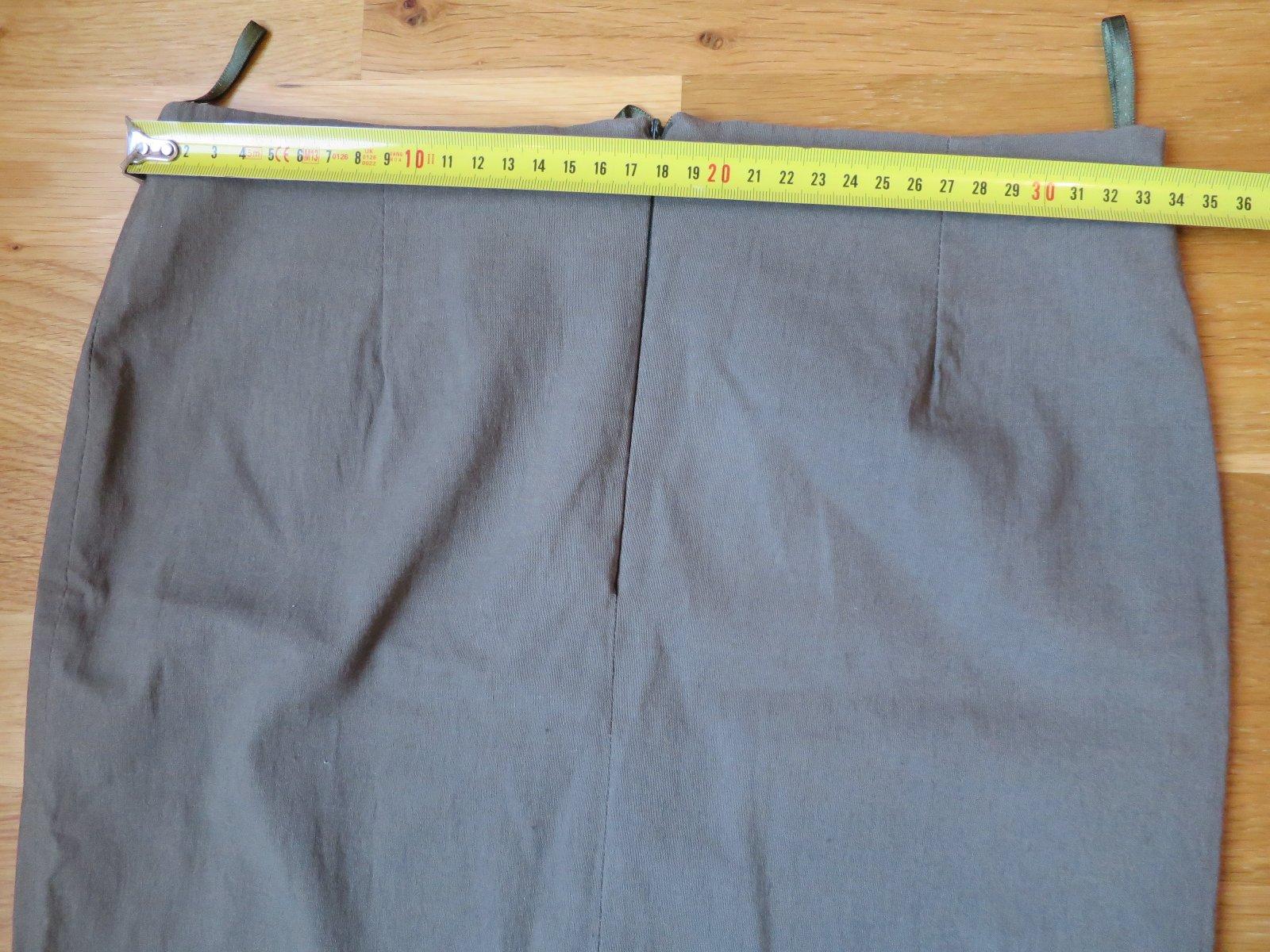 Damska sukna. ROZMERY VO FOTO. Elasticke. Velk. udava 38 ale je to skor 36. Bez poskodenia. Farba je khaki nie take vyblednute ako na fotke, neslo lepsie. Bez poskodenia, velmi dobry stav.