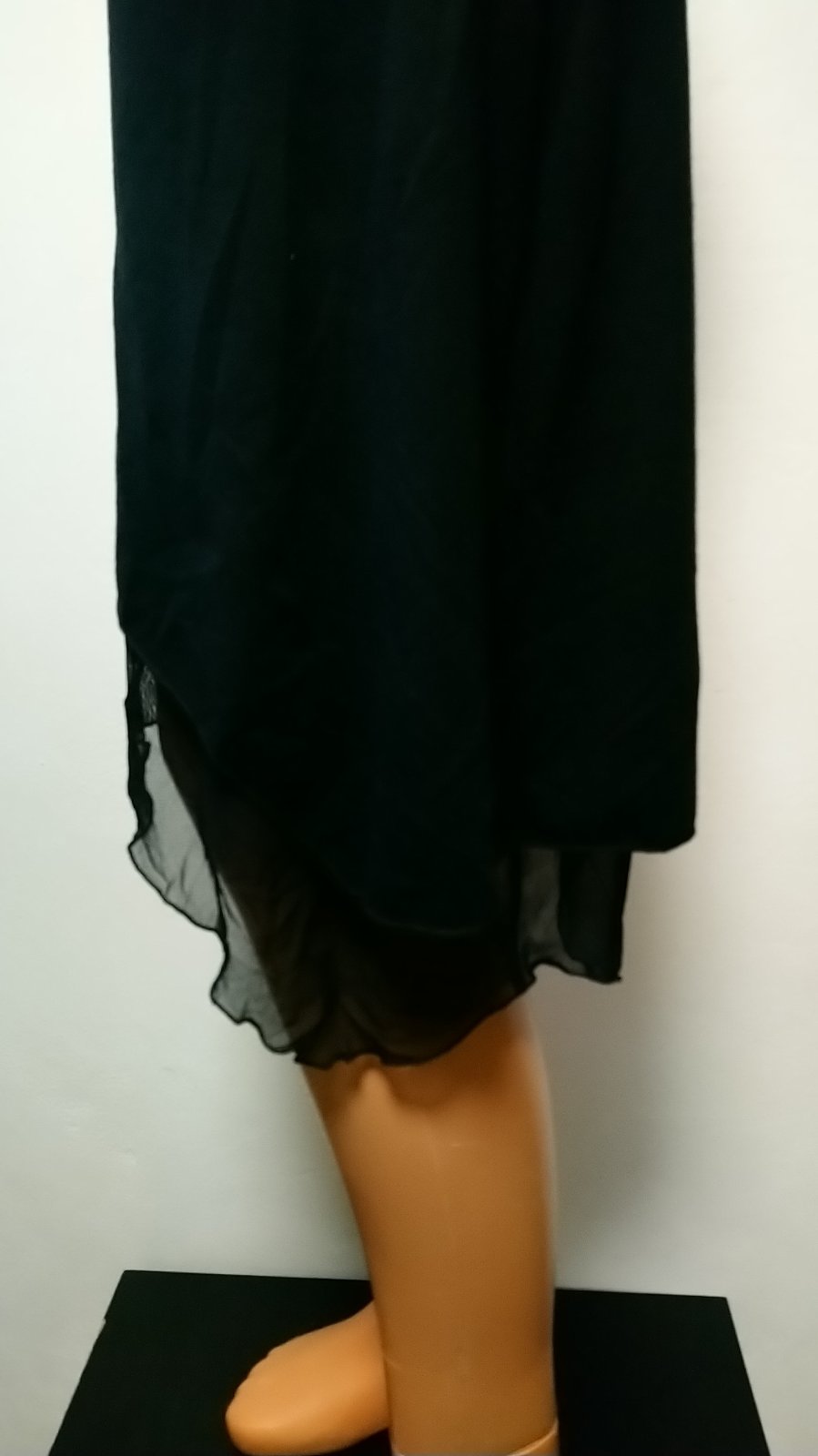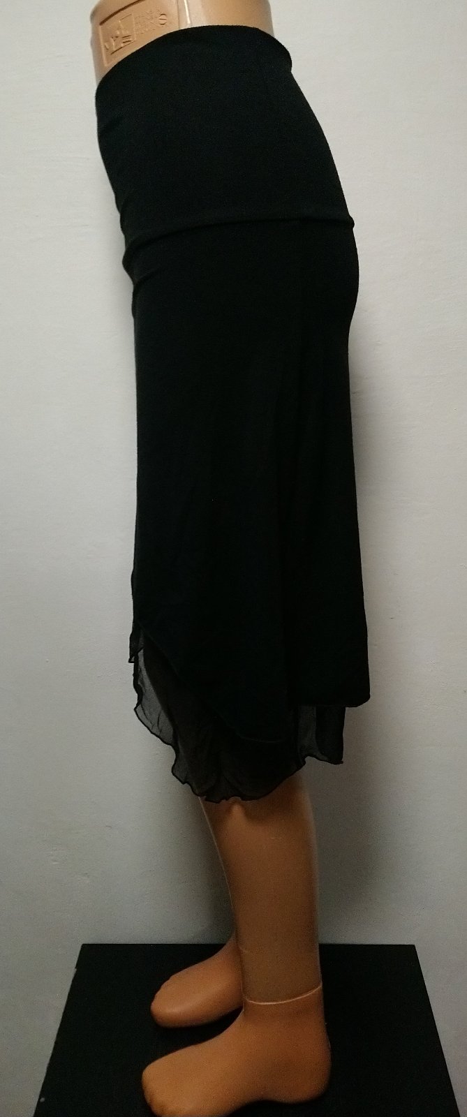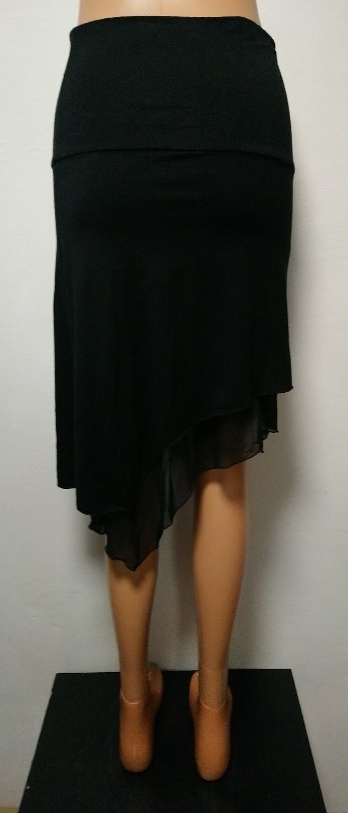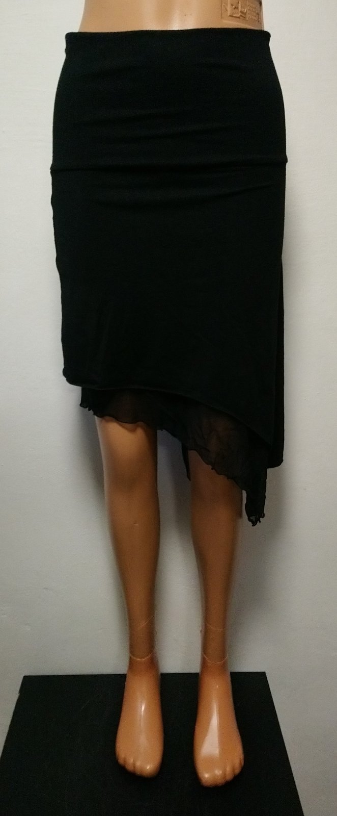 dámska čierna elastická sukňa v páse široký patent. asymetrická dĺžka, dve vrstvy - spodná vrstva sieťovaná látka,