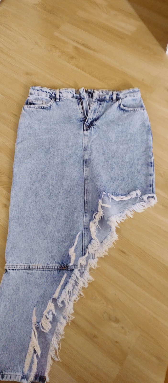 Predam novu sukňu z vysačkou.Predny diel kratši zadny dlhši.Modra z pružkami v pase v zadu guma takže sa natiahne v pripade zaujmu pomeriam.Cena bola 35 eur predam za 15 plus pošta