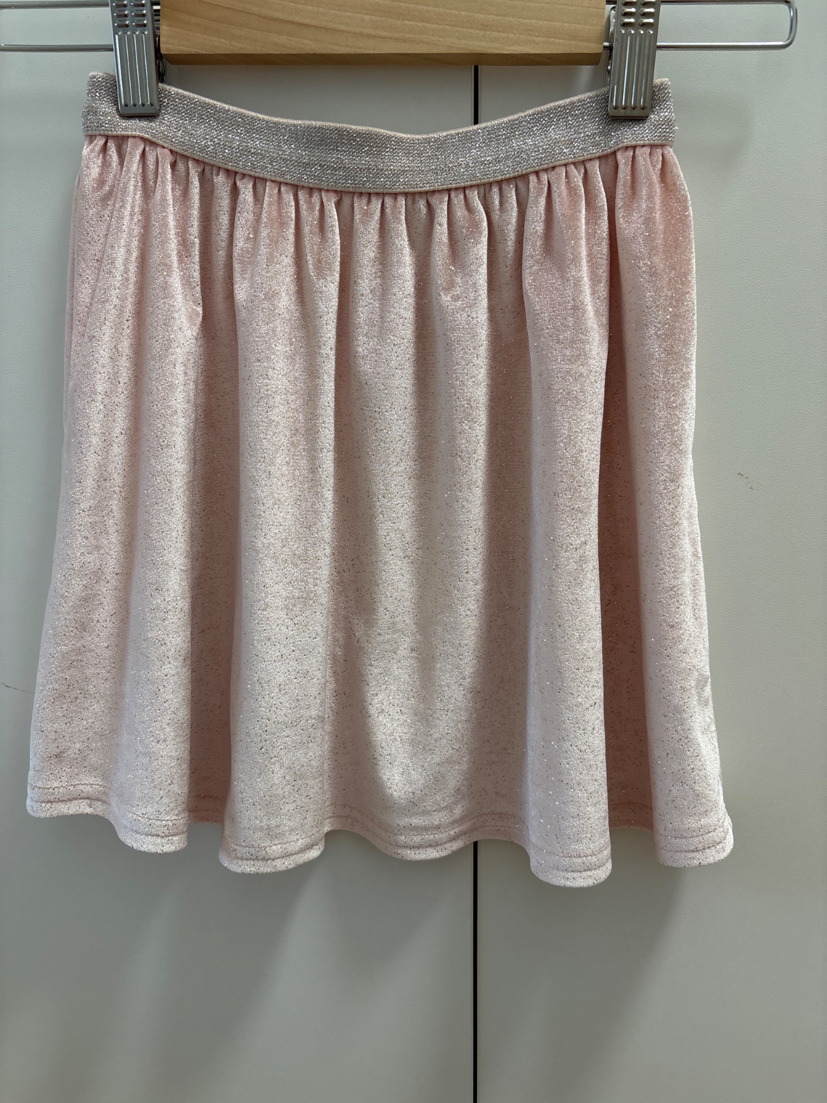 Sukňa zn.Pepco,veľkosť 116cm,bledoružová,zamatová so zlatými trblietkami,na gumičku.Veľmi pekný stav,bez poškodenia.