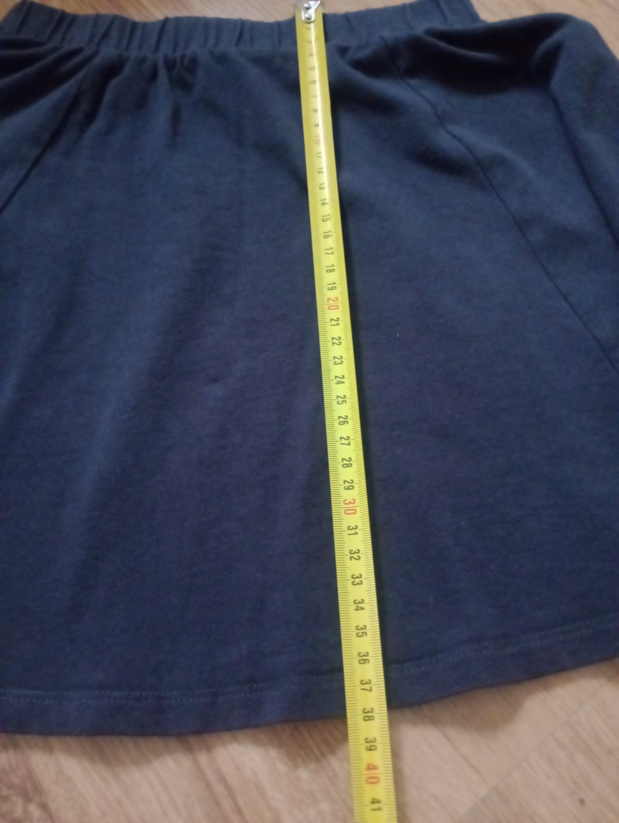 Oficiálne v. 164, ale sedí na 158. Pohodlná tepláková sukňa na gumičku, taká tmavo-sivomodrá. Rozmery na fotkách. Bez fľakov a dier