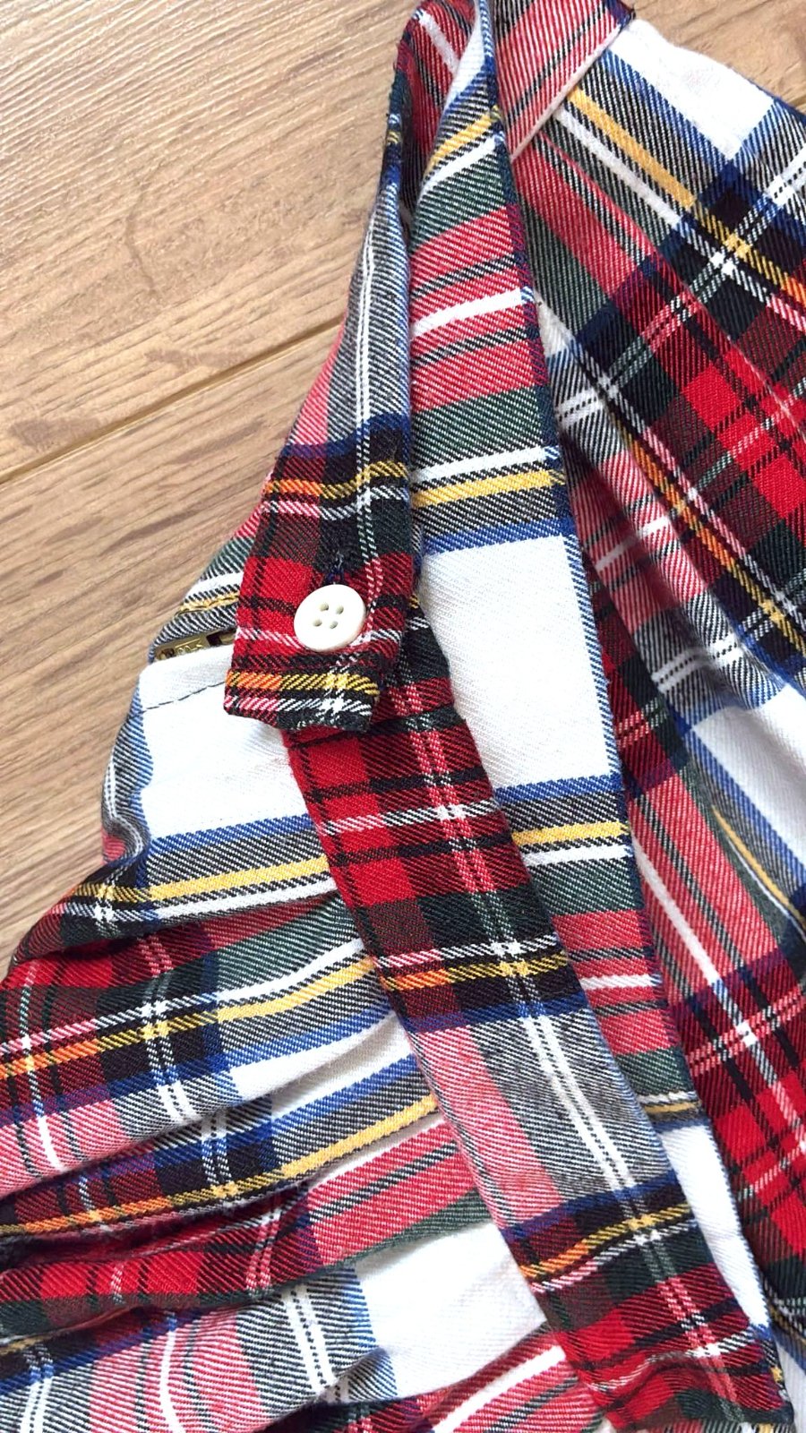Predám sukňu s klasickým károvaným vzorom v kombinácií červenej, bielej, čiernej a žltej farby, má elegantný naskladaný nadčasový strih obĺúbený v jarnom, jesennom aj zimnom období, je ušitá z kvalitného pevnejšieho materiálu-bavlna/polyester (príjemný, mierne hrejivý podobný flanelu), sklady dobre držia tvar, na zadnej strane je skrytý 16cm dlhý zips a gombík pre lepšie prispôsobenie, d=43cm, š pás=31cm, top stav, oblečená 2x, vyrástli sme.