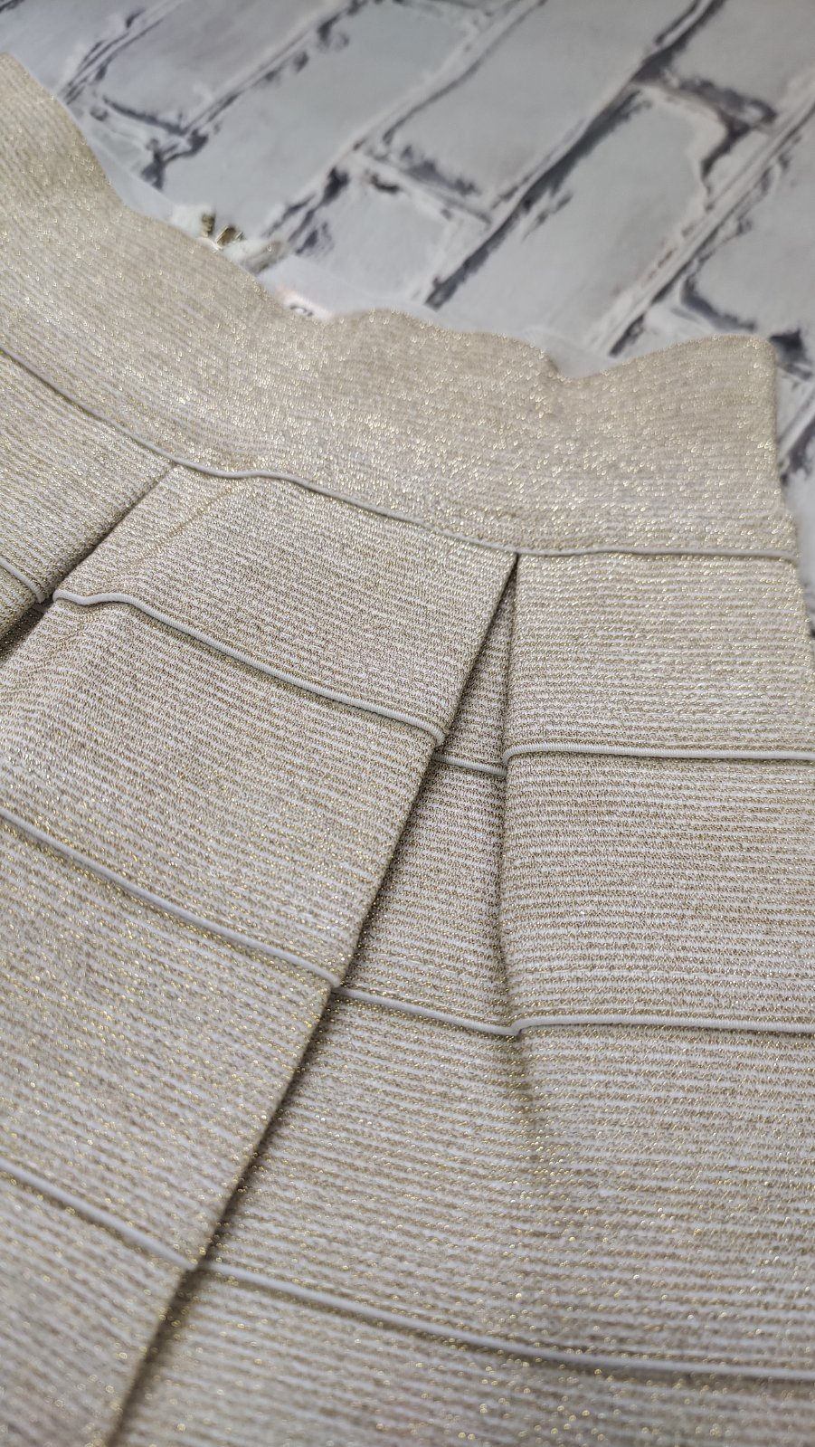 Metalická sukňa,vzadu na zips. V páse je v zadnej časti guma.