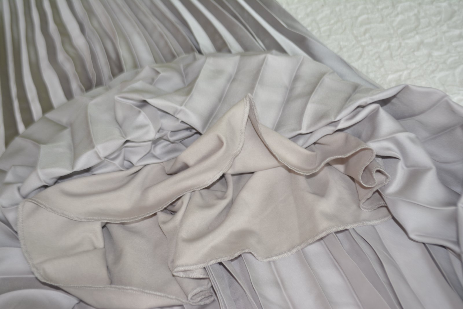Sukňa má plisovaný efekt. Táto dlhá sukňa je vyrobená z hladkej, lesklej látky. Aby sukňa nepresvitala, je podšitá.