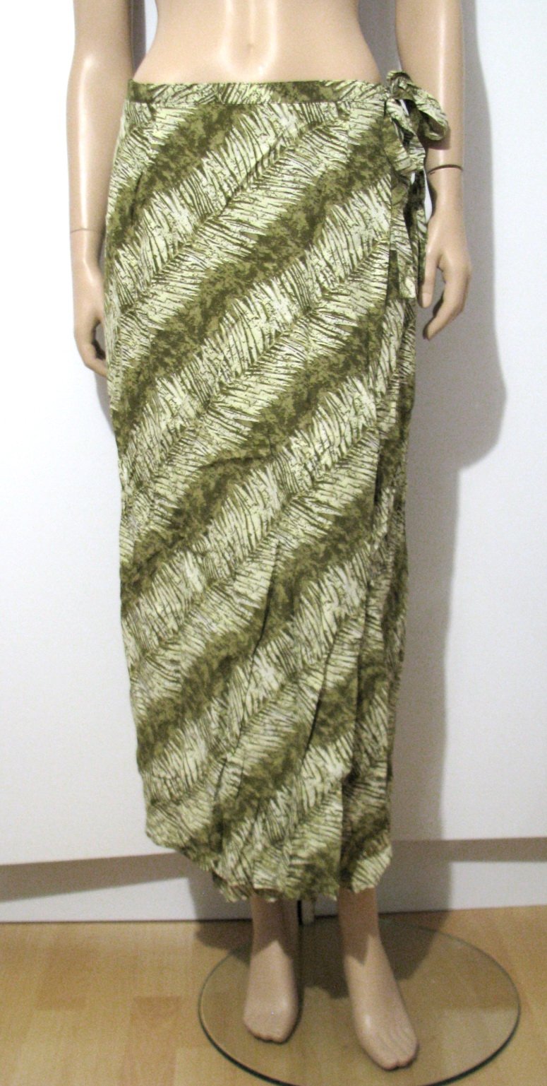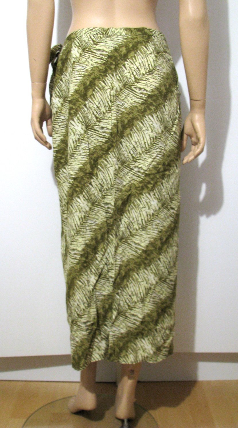 Zavinovacia dlhá sukňa, khaki, resp. olivovej farby. Midi alebo maxi, bola výšky. Výborne zachovalá, bez poškodení. Materiál odhadujem na viskózu. Štítok chýba. Veľkosť odhadom L/XL. V prípade záujmu premeriam.