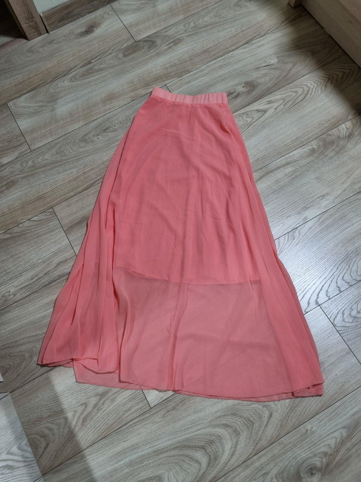 Krásna,ľahká letna maxi sukňa,príjemný padavý materiál,párkrát oblečená,ako nová,lososovoružová,dĺžka 103cm
