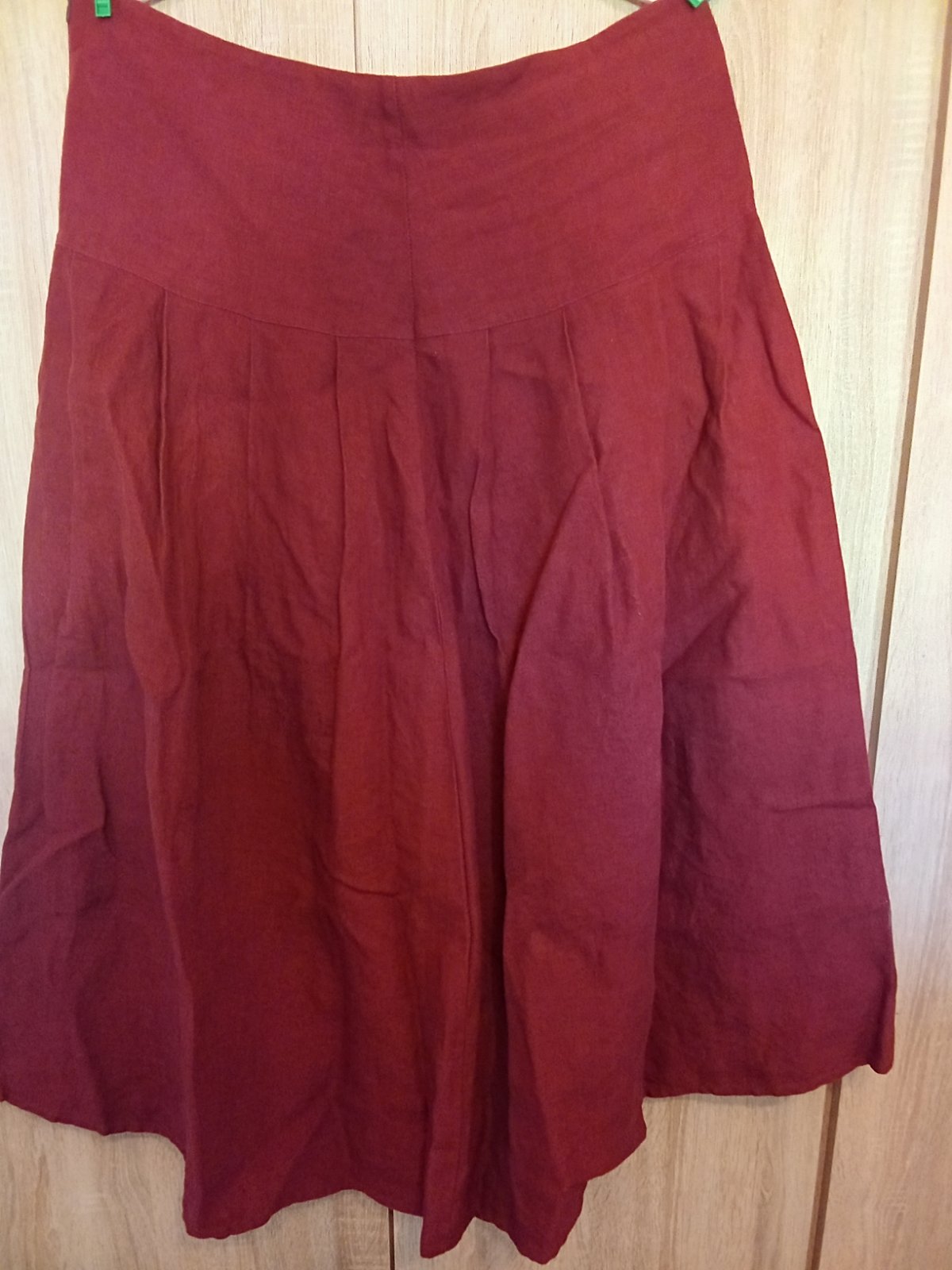 Sukňa má v hornej časti sedlo, v zadu zapínanie na zips, pôsobí veľmi žensky. Materiál je vzdušný a v kombinácii s pohodlným neobmedzujúcim strihom robí sukňu použiteľnou v horúcom aj chladnejšom počasí.