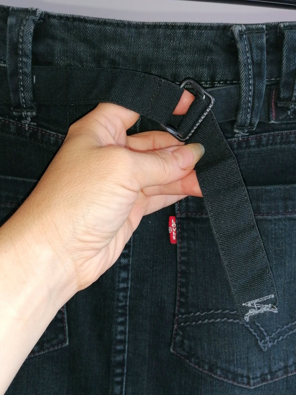 Typický remienok na sťahovanie v páse v zadu.