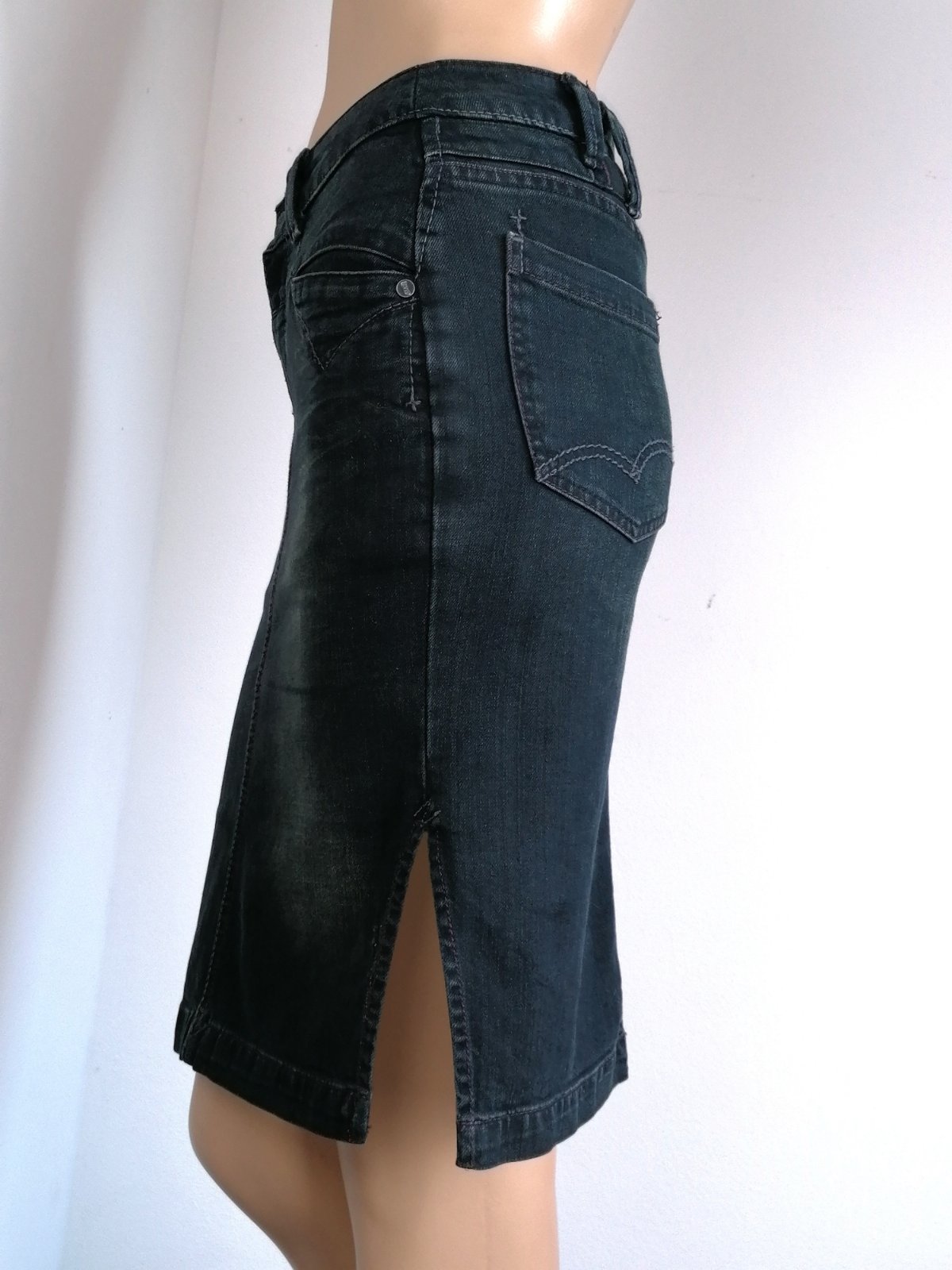 Ponúkam svoju sexi rifľovú sukňu v antracitovo-čiernej farbe.