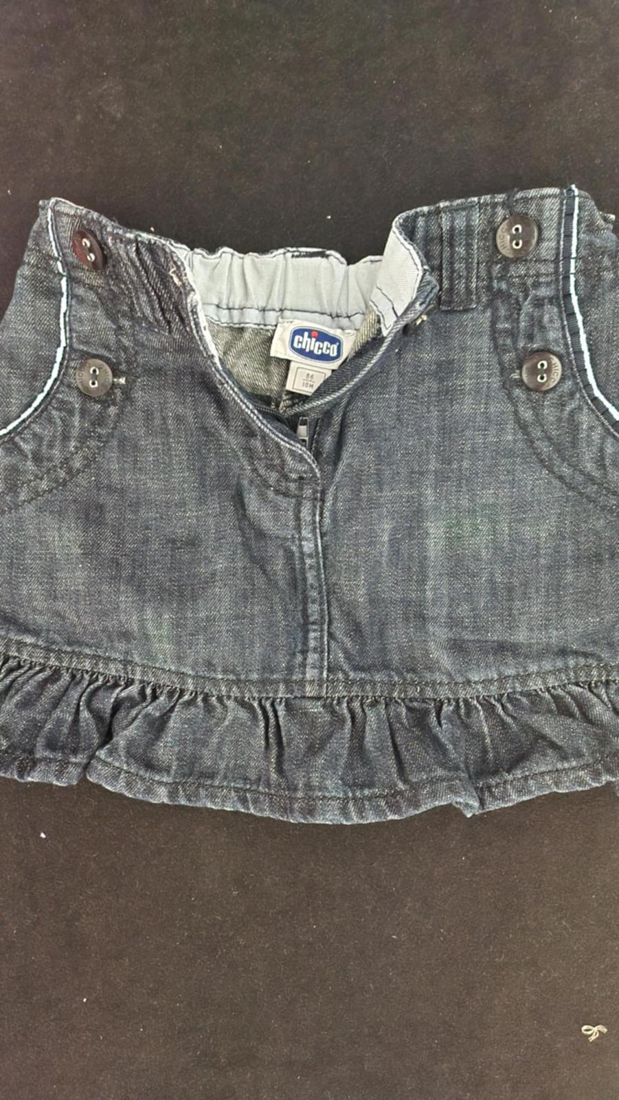 Riflová sukňa so zipsom na boku vzadu na gumičku vpredu s vreckami na ktorých je pekná aplikácia. Veľkosť písaná na 24 mesiacov, zn.Benetton. Vynikajúci nosený stav. Cena 3,-€ plus poštovné.