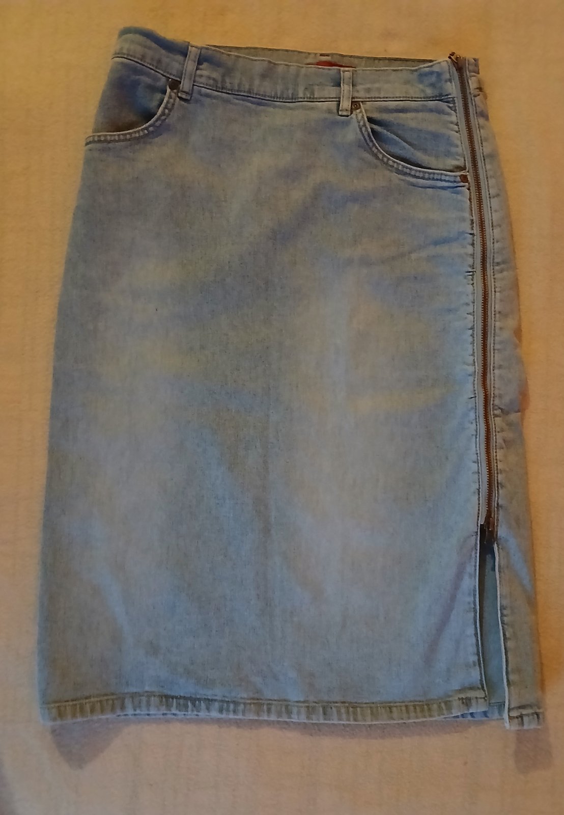 Veľmi pekná značková suknička, mierne vyšúchaná, v módnej midi dľžke. Výnimočná na boku zipsom po celej dĺžke. Je mierne pružnéá čo je prednosťou pri nosení.