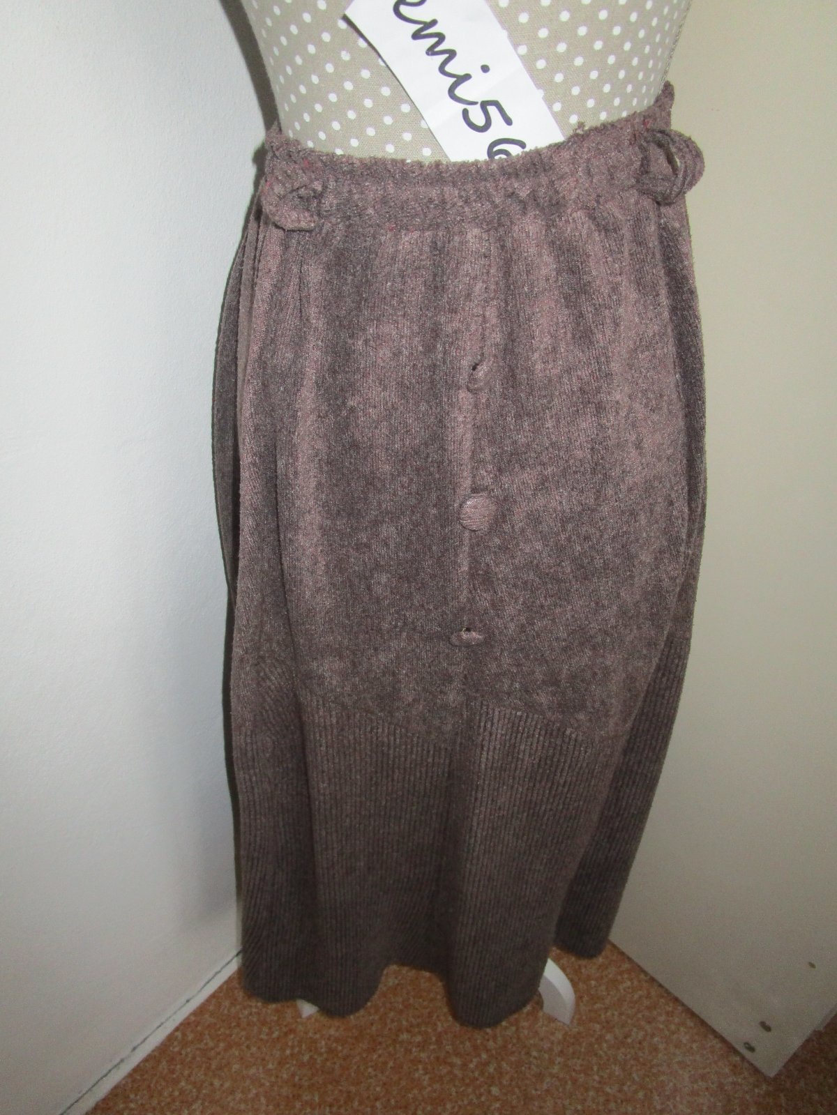 Sv. hnedá (v skut. krajšia farba) sukňa je z 8 dielov. Mat. nie je náročný na žehlenie. Rozparok nemá.
