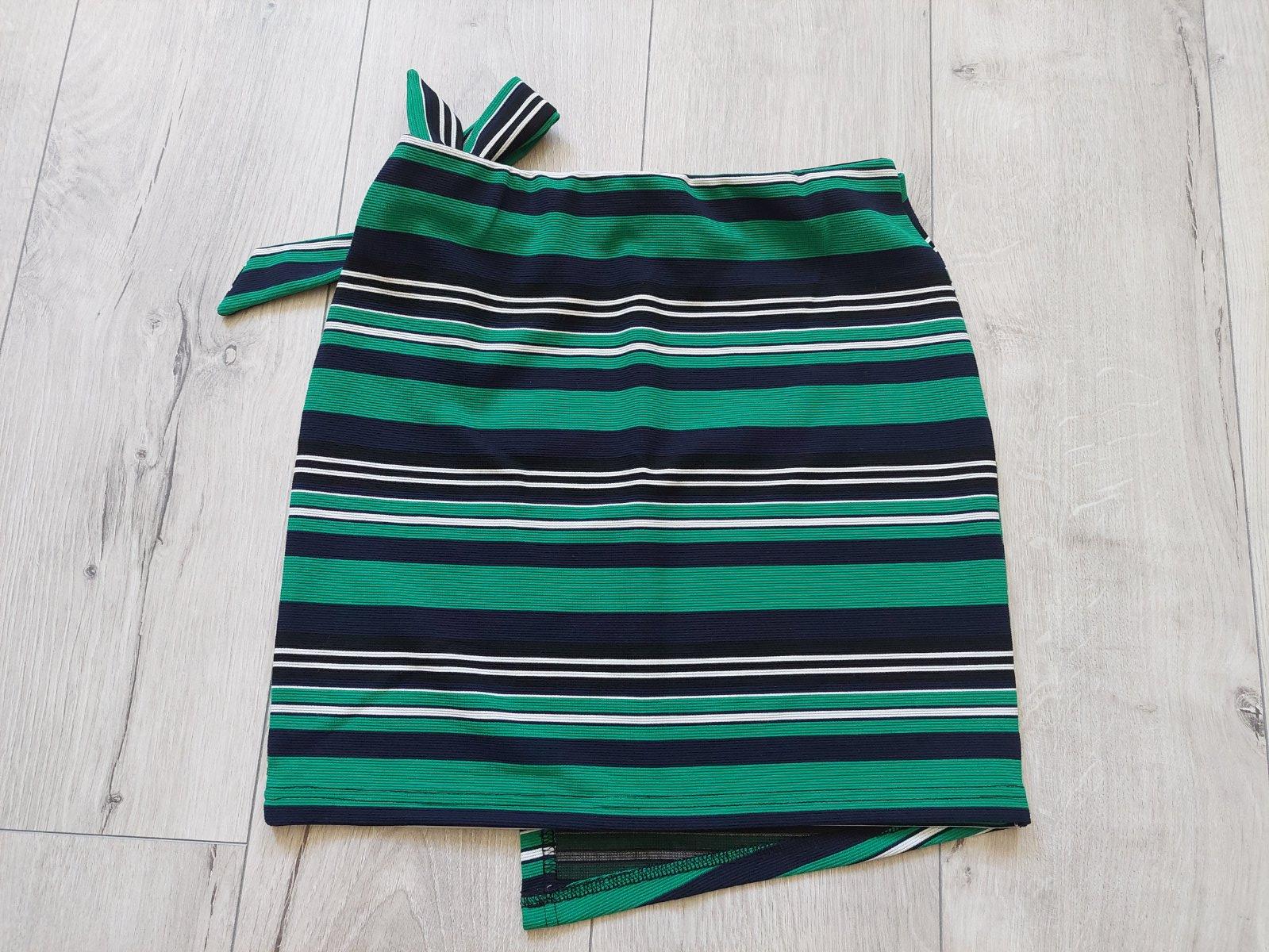 Krásna asymetrické minisukňa. Predok sa skladá z dvoch vrstiev látky. Je na gumičku. Veľkosť písaná 34 ale oblecie aj veľkosť 36. Raz vzatá takže v top stave.