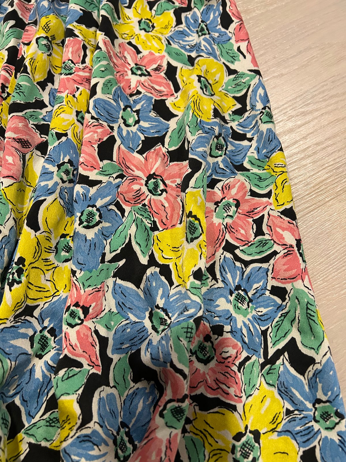 pestrofarebná sukňa z nekrčivého , padavého materiálu podobnemu hodvábu. pevný pás, na boku zips, vo veľmi dobrom stave, bez poškodenia