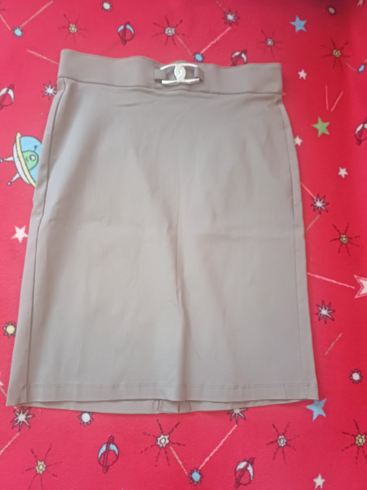 Málo nosená sukňa, priliehavý strih, prispôsobivá. Farba tmavosivá, veľkosť písaná L. Široký pás. ROZMERY: celková dĺžka 42 cm pás 42 cm x 2 boky 43 cm x 2