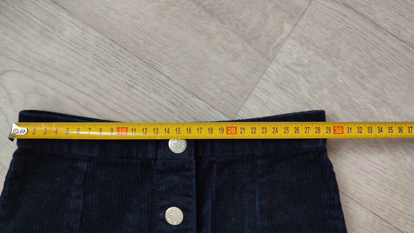 v super stave, teplučká, super sa kombinuje, , veľkosť 134/140, dĺžka 35cm, pás v kľude 31, je tam guma natiahne sa